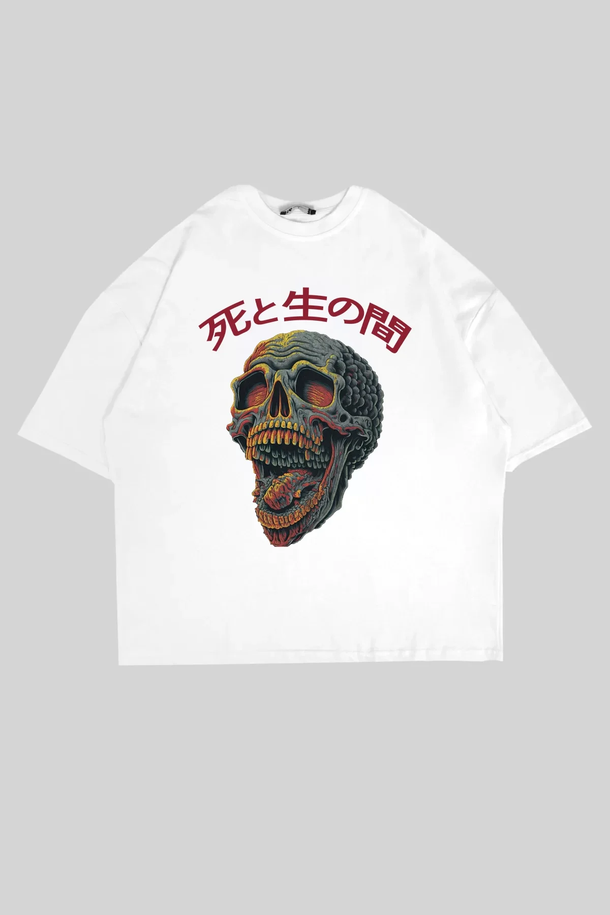 Japanese Anime Baskılı Oversize Unisex Beyaz Tshirt