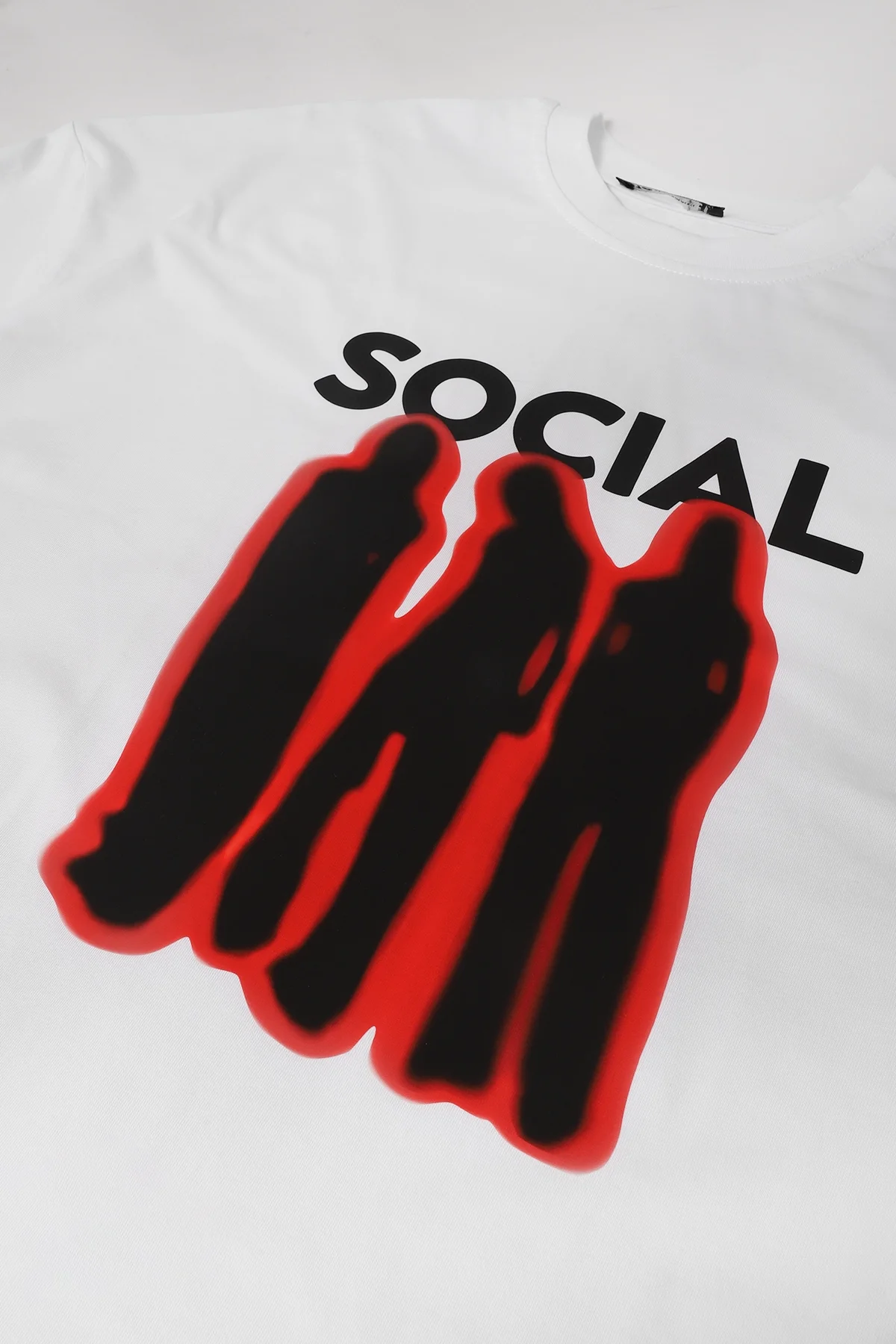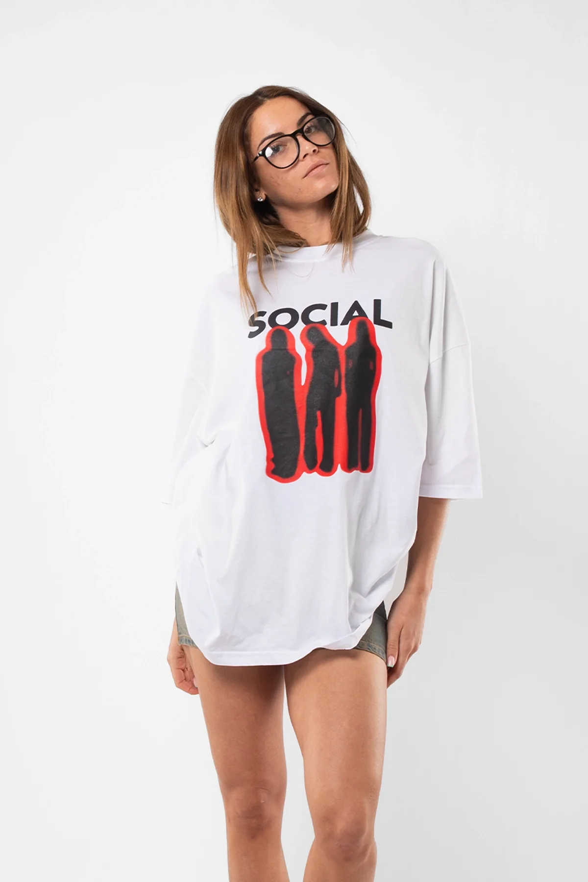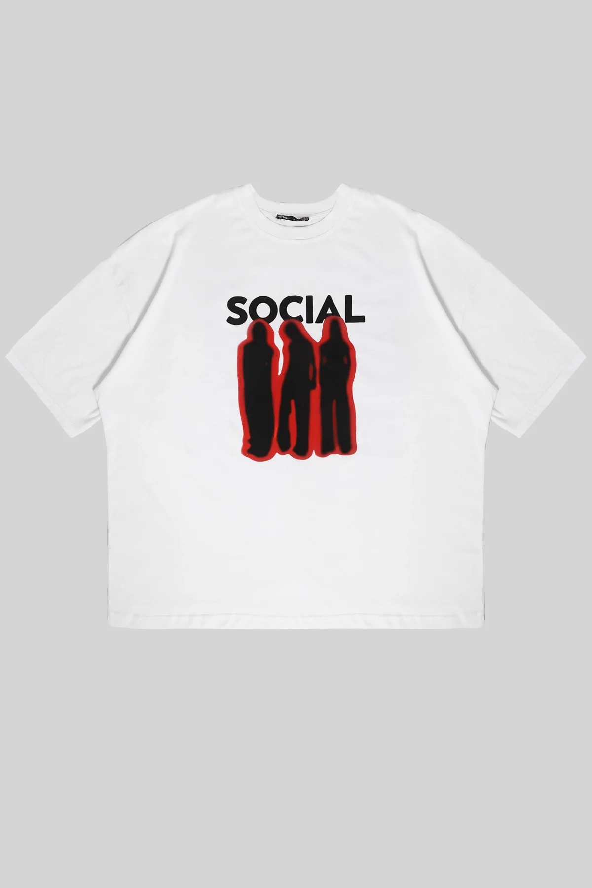 SOCİAL BASKILI BEYAZ UNİSEX OVERSİZE TSHİRT
