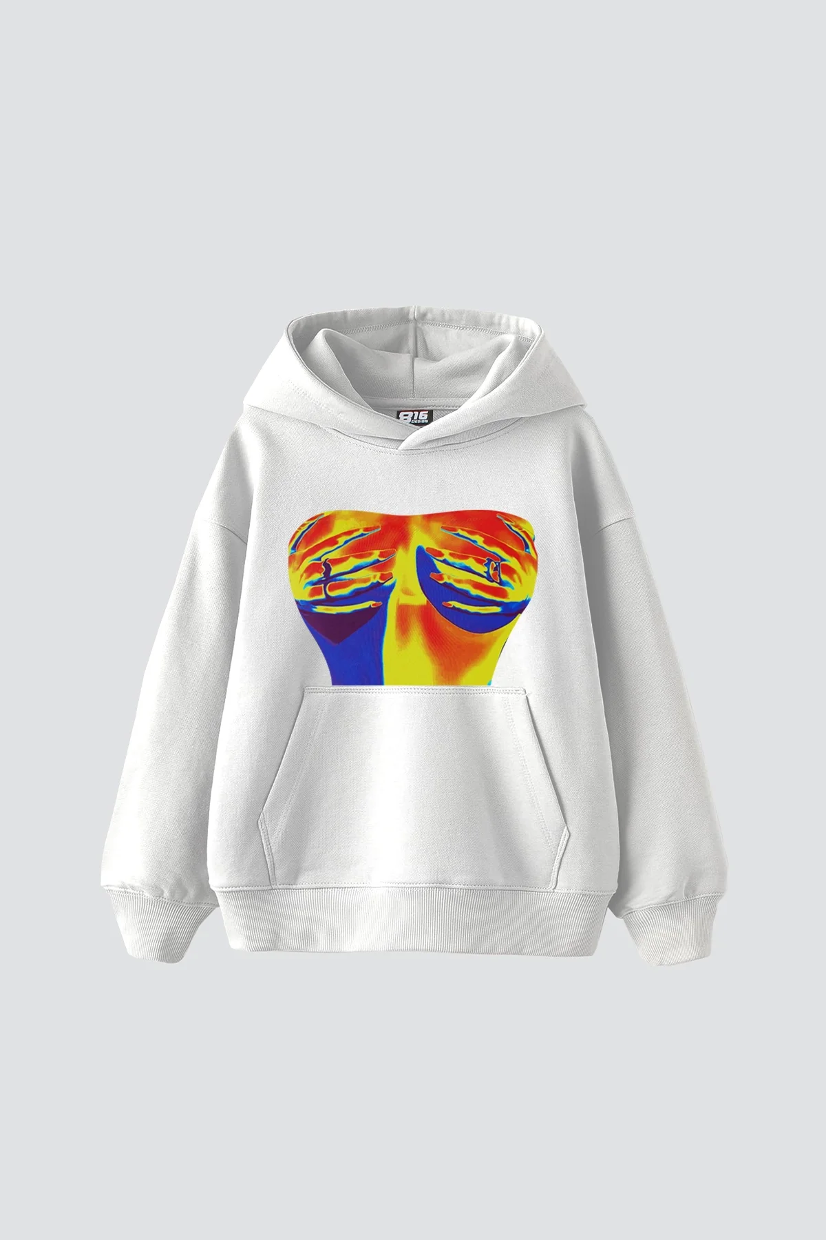 Sokak stiline ışıltılı bir dokunuş: Thermal Boobs Baskılı Beyaz Hoodie, oversize kesimi ve göz alıcı detaylarıyla tarzını cesurca yansıtmak isteyenler için tasarlandı.