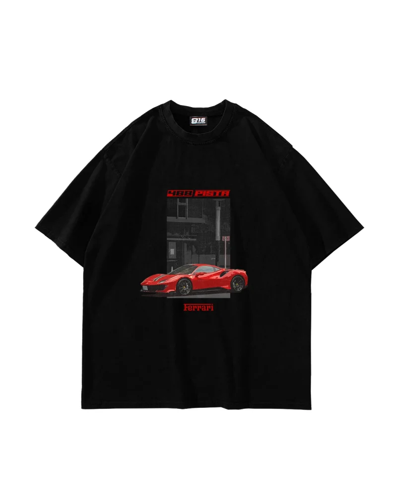 488 Pista Baskılı Oversize Unisex Siyah Tshirt