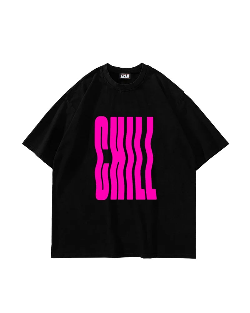 Chill Baskılı Oversize Unisex Siyah Tshirt
