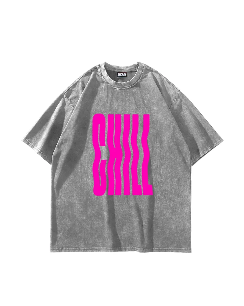 Chill Baskılı Oversize Unisex Yıkamalı Beyaz Tshirt