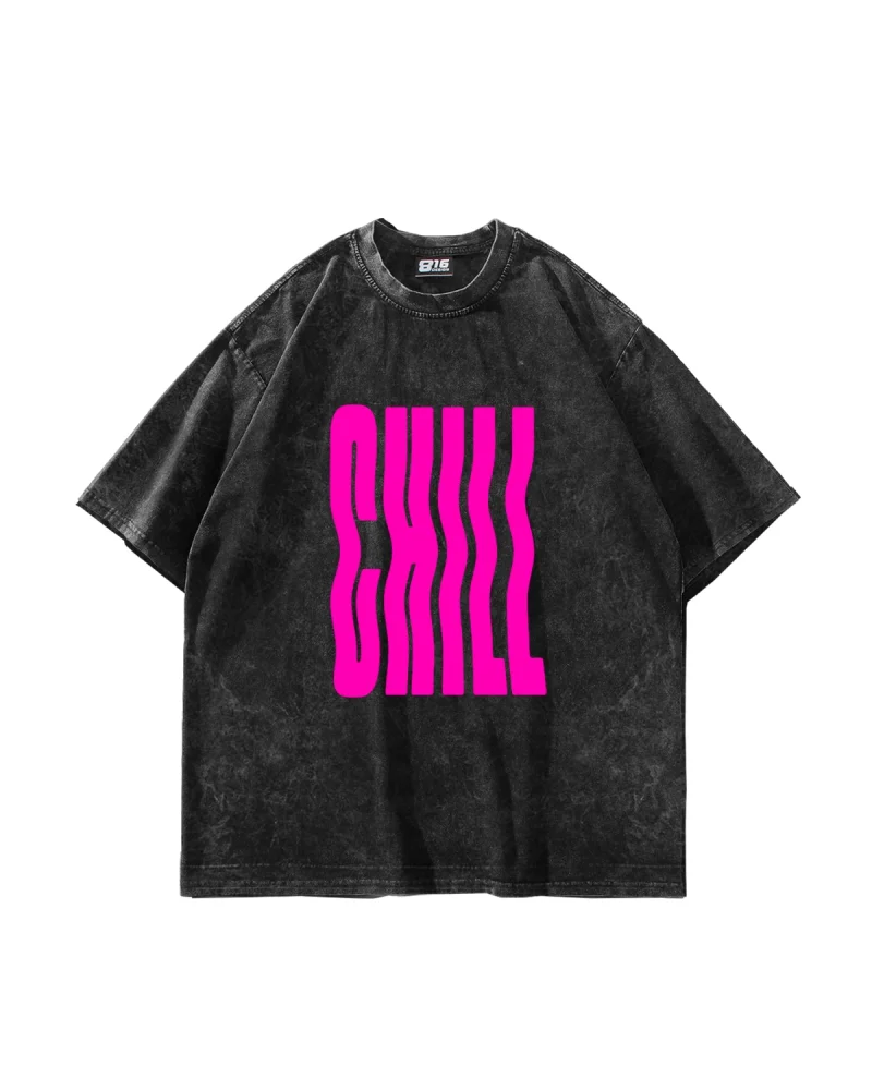 Chill Baskılı Oversize Unisex Yıkamalı Siyah Tshirt