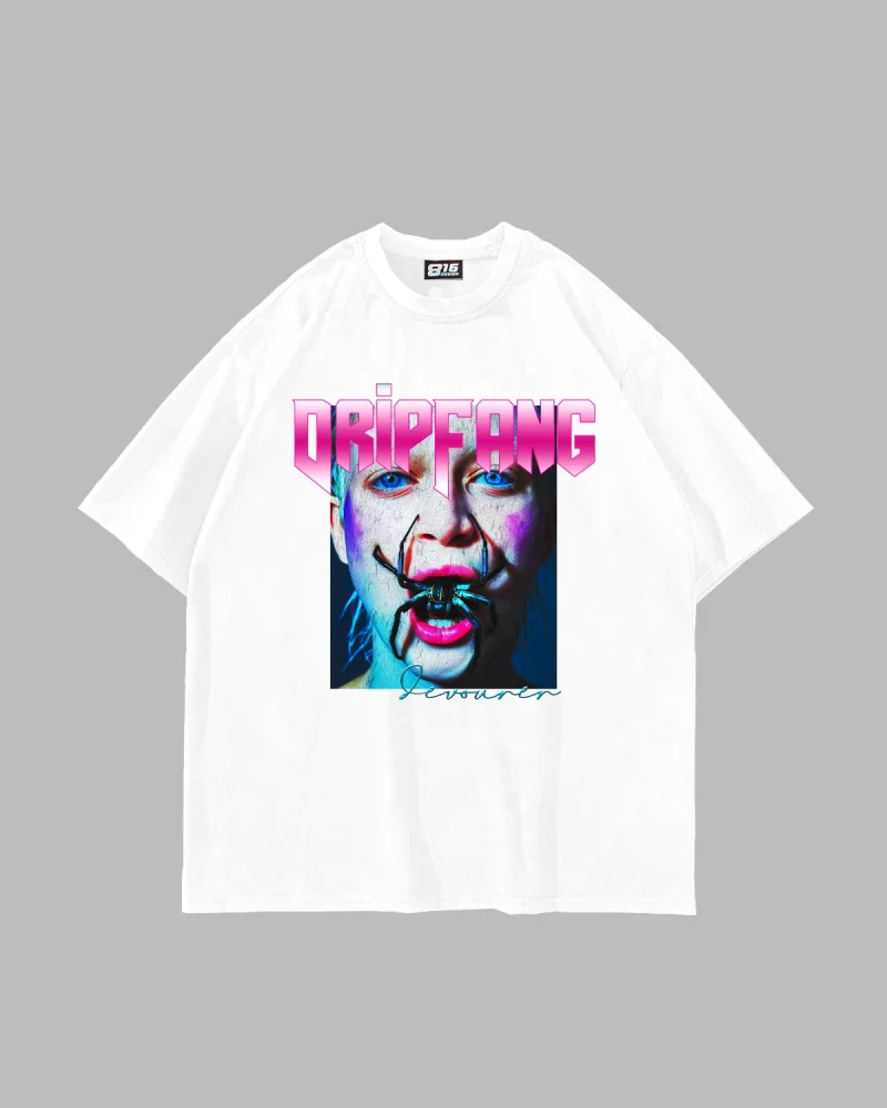 DripFang Baskılı Oversize Unisex Beyaz Tshirt