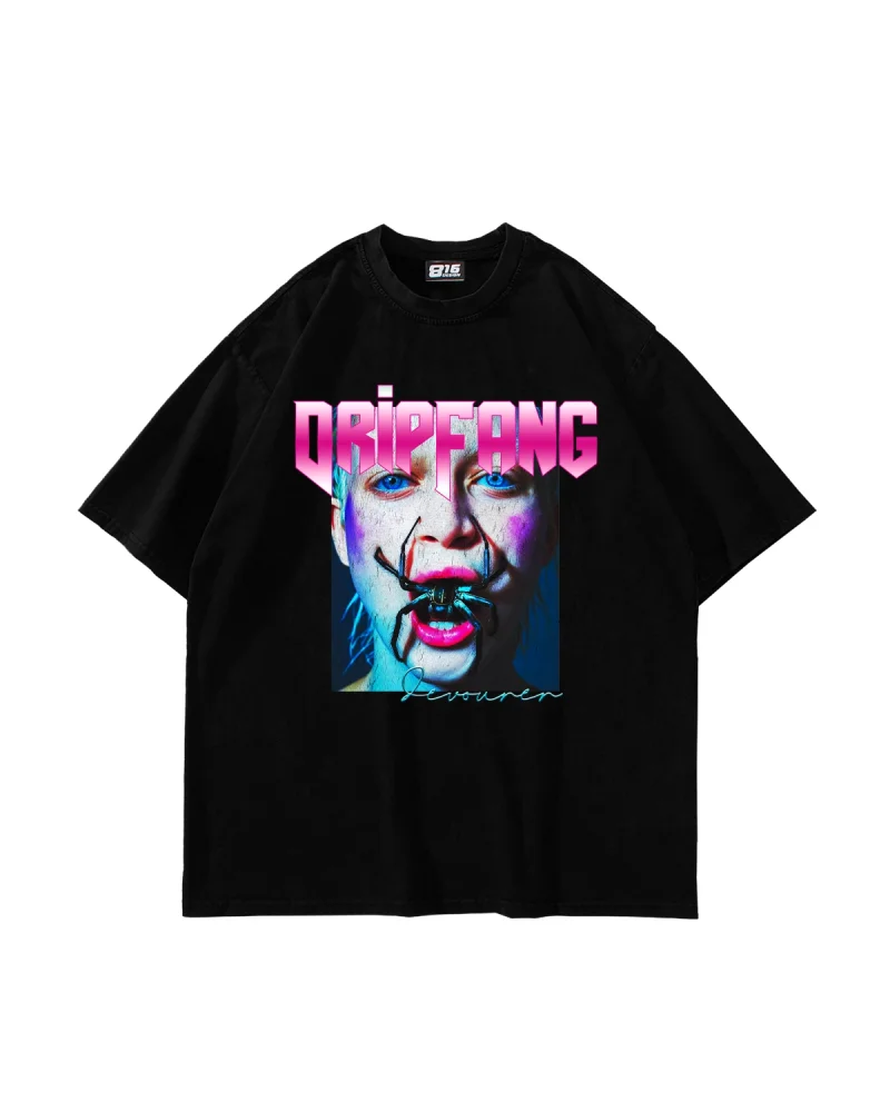 DripFang Baskılı Oversize Unisex Siyah Tshirt