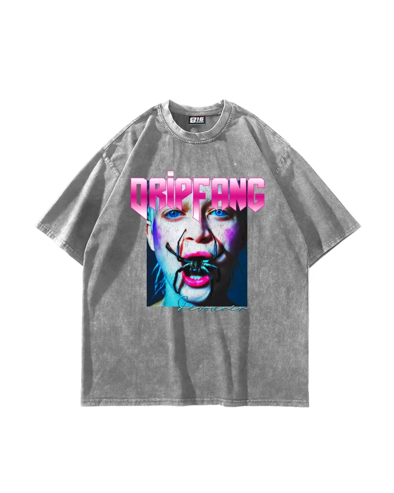 DripFang Baskılı Oversize Unisex Yıkamalı Beyaz Tshirt