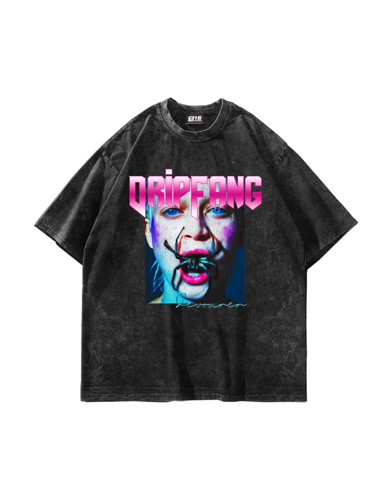DripFang Baskılı Oversize Unisex Yıkamalı Siyah Tshirt