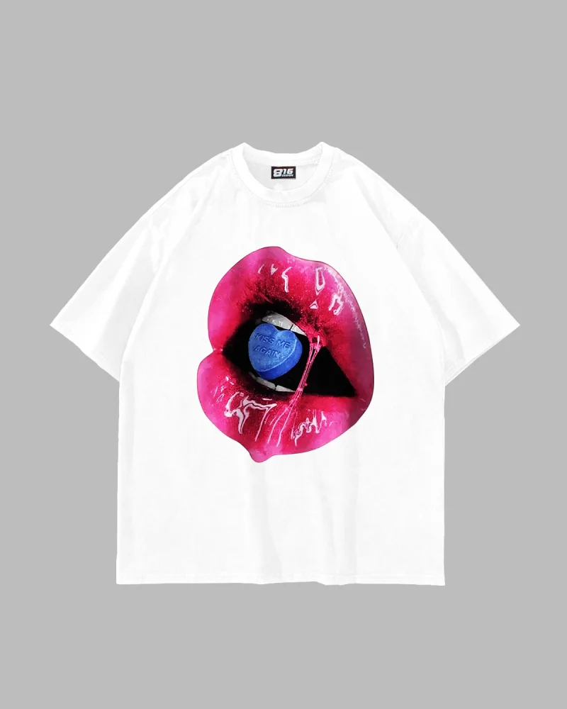 Kiss Me Again Baskılı Oversize Unisex Beyaz Tshirt