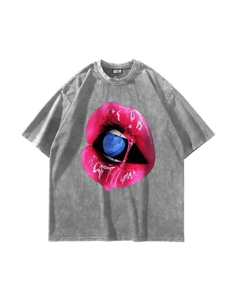 Kiss Me Again Baskılı Oversize Unisex Yıkamalı Beyaz Tshirt