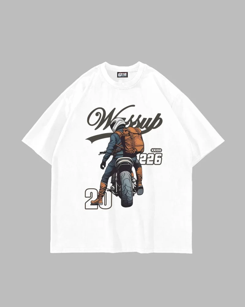 Motor Rider Baskılı Oversize Unisex Beyaz Tshirt
