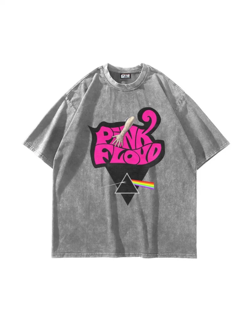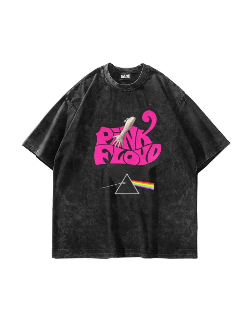 Pink Floyd Baskılı Oversize Unisex Yıkamalı Siyah Tshirt