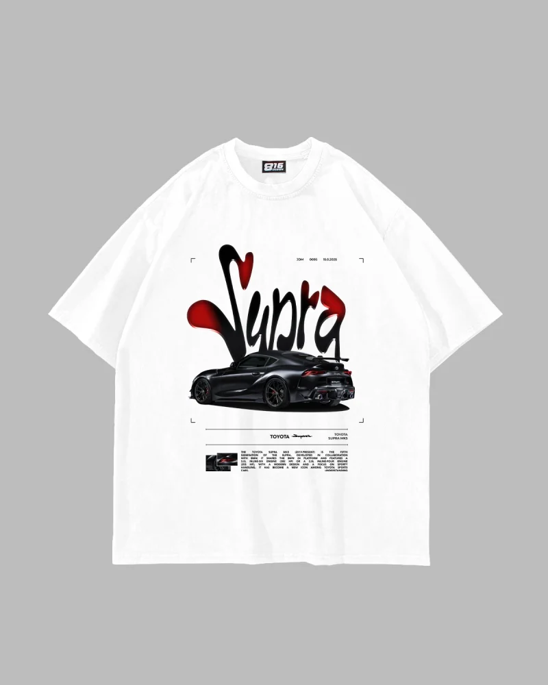 Supra Baskılı Oversize Unisex Beyaz Tshirt