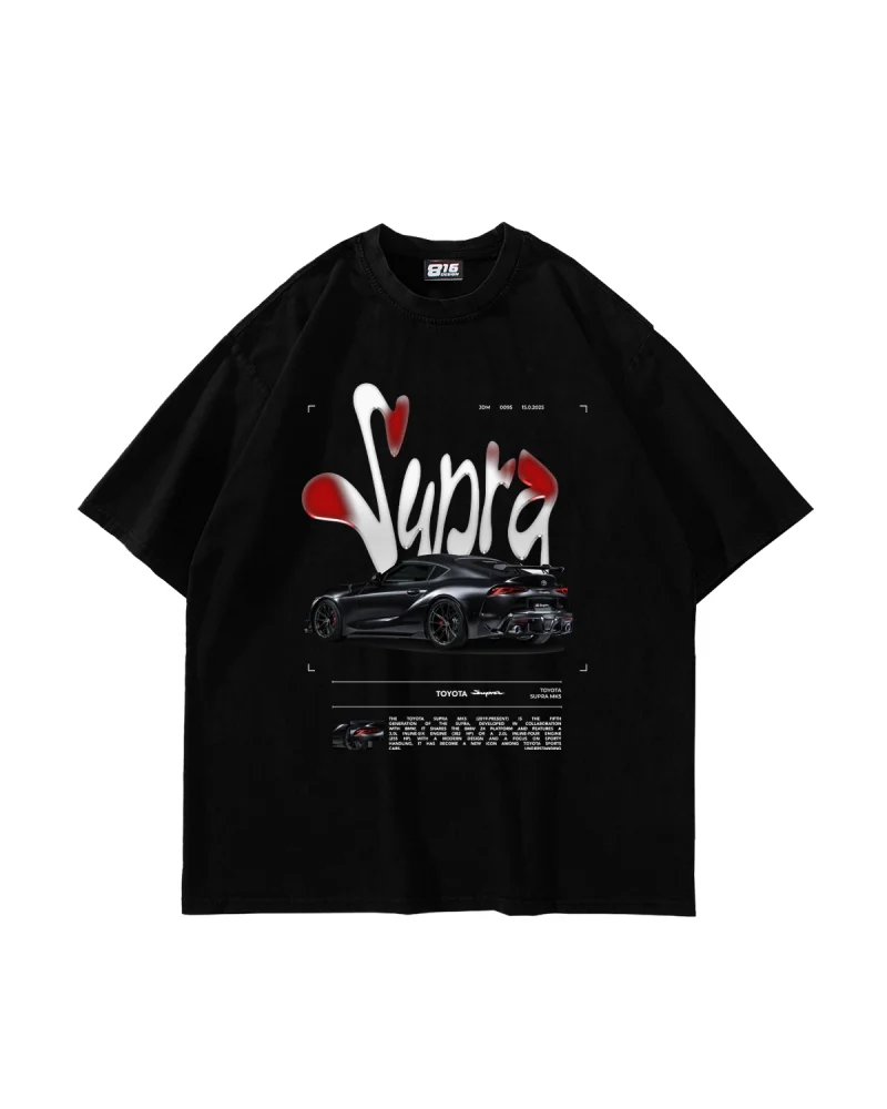 Supra Baskılı Oversize Unisex Siyah Tshirt
