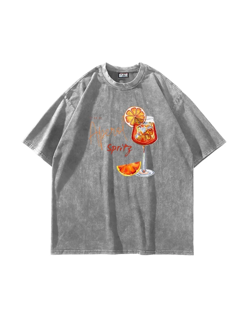 The Aperol Spritz Baskılı Oversize Unisex Yıkamalı Beyaz Tshirt