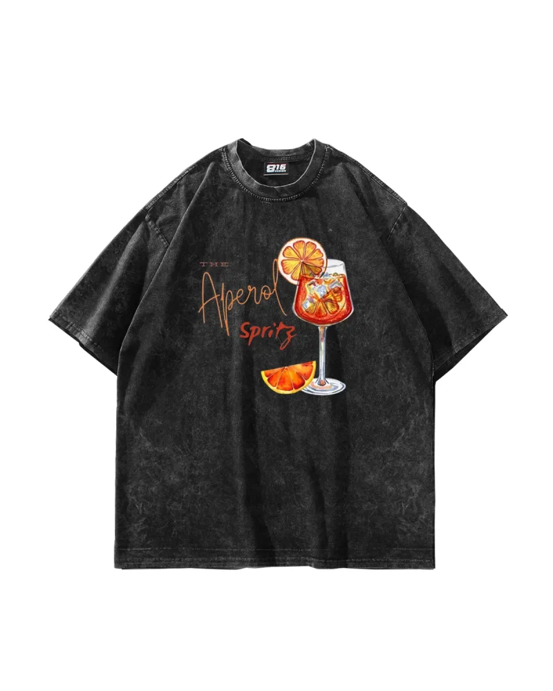 The Aperol Spritz Baskılı Oversize Unisex Yıkamalı Siyah Tshirt