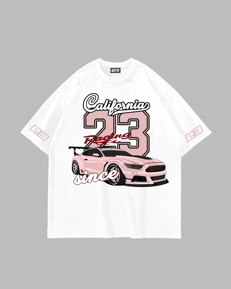 California Racing Baskılı Oversize Unisex Beyaz Tshirt