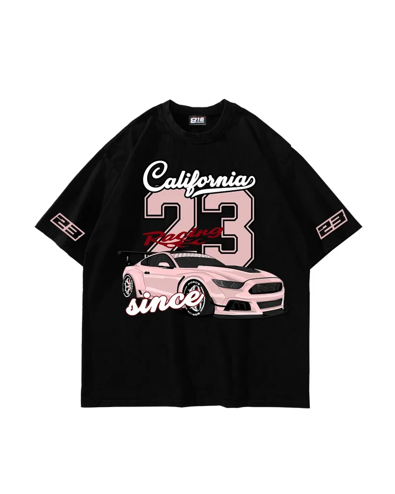 California Racing Baskılı Oversize Unisex Siyah Tshirt