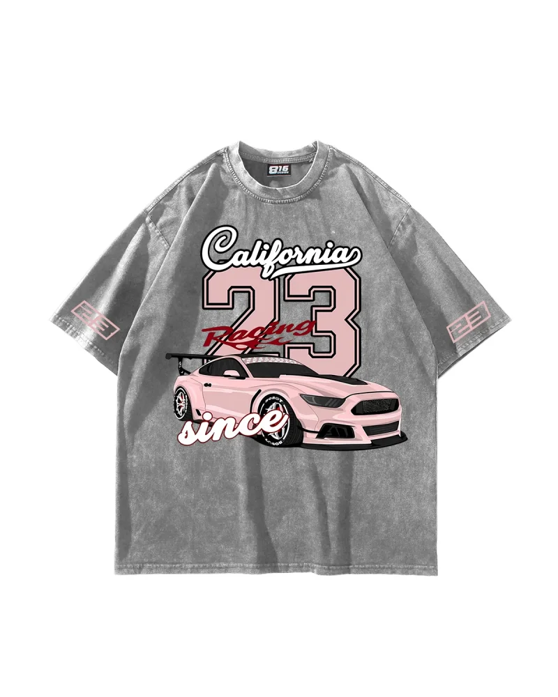 California Racing Baskılı Oversize Unisex Yıkamalı Beyaz Tshirt