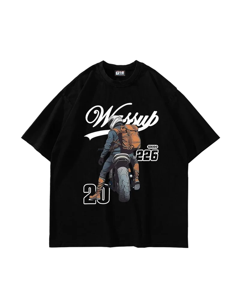 Motor Rider Baskılı Oversize Unisex Siyah Tshirt