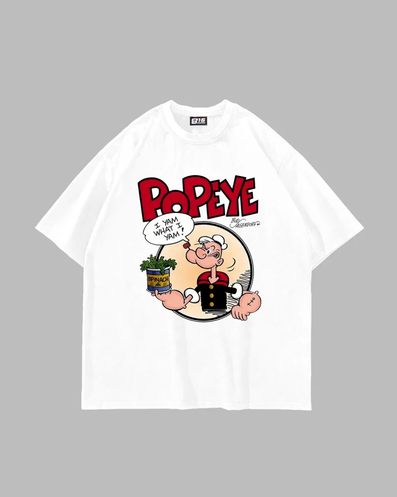 Popeye Baskılı Oversize Unisex Beyaz Tshirt