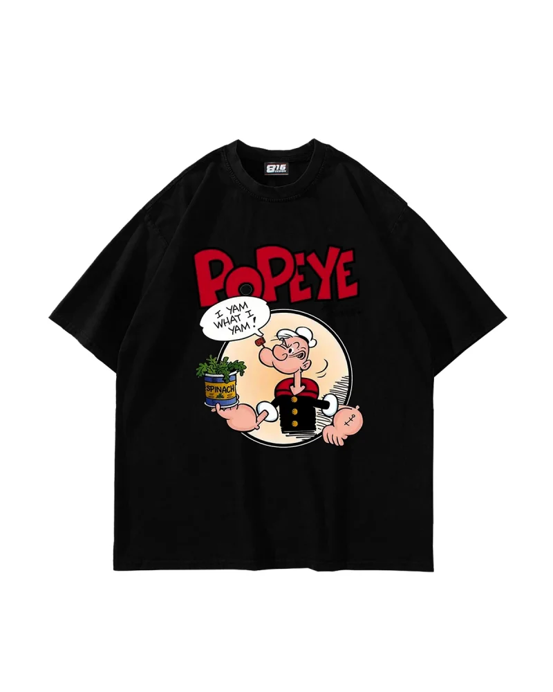 Popeye Baskılı Oversize Unisex Siyah Tshirt