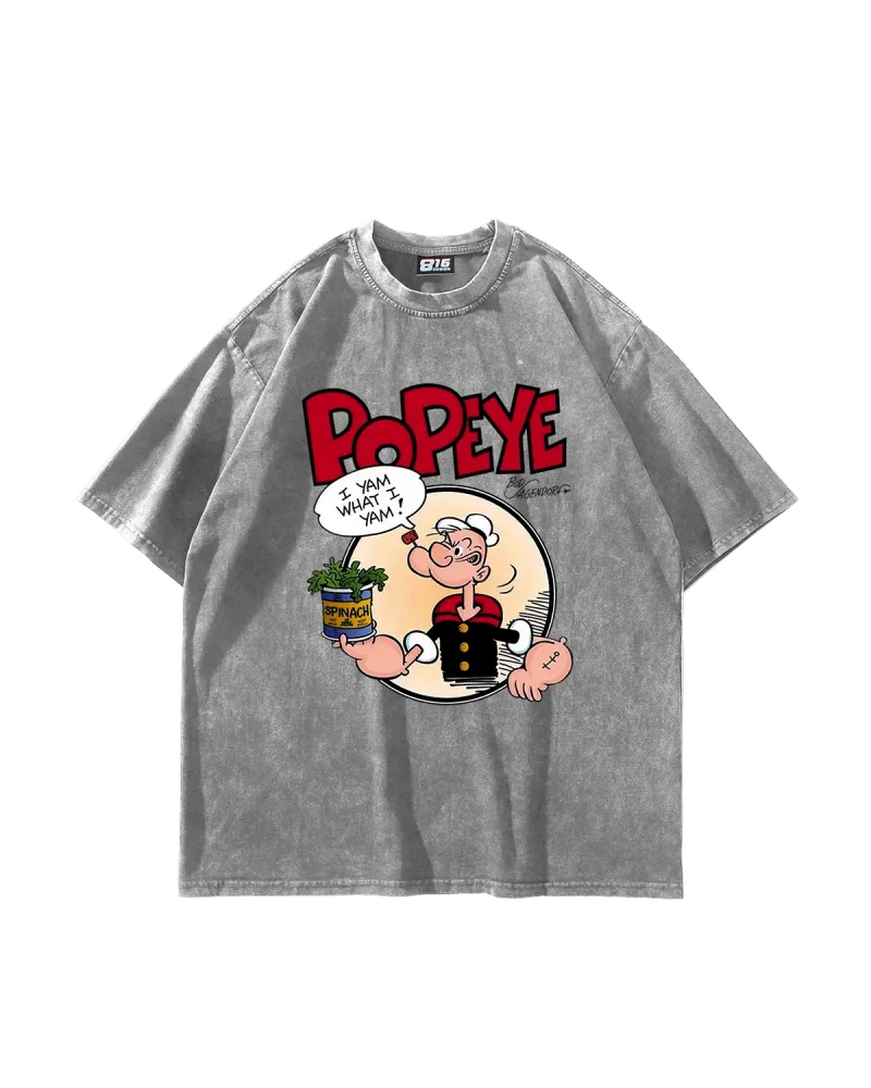 Popeye Baskılı Oversize Unisex Yıkamalı Beyaz Tshirt