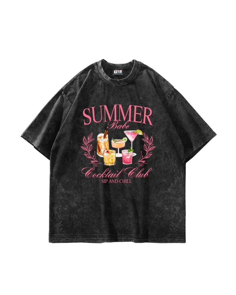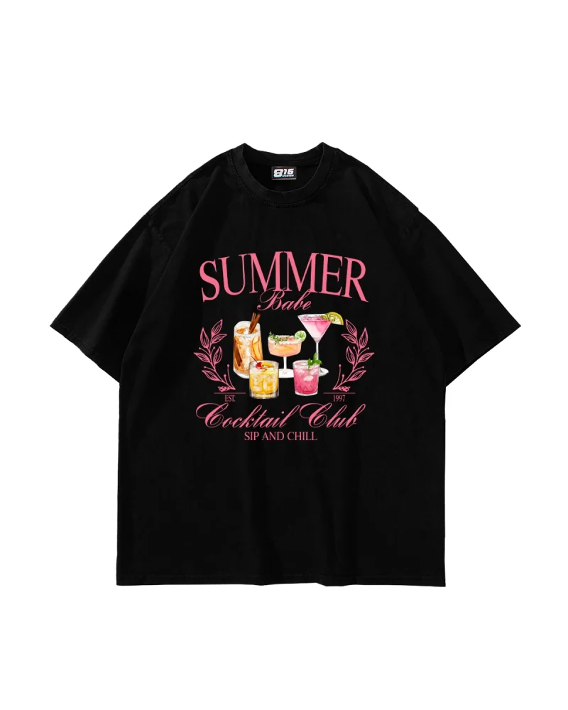 Summer Bbe Baskılı Oversize Unisex Yıkamalı Siyah Tshirt