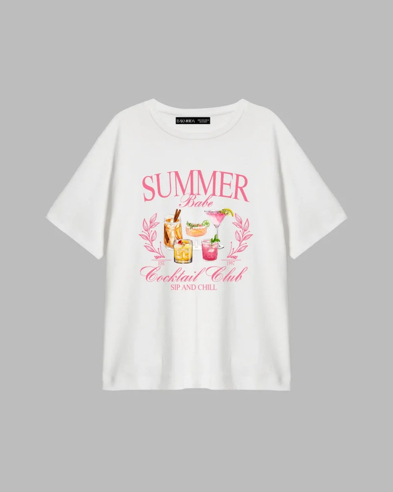 Summer Bbe Baskılı Oversize Unisex Beyaz Tshirt