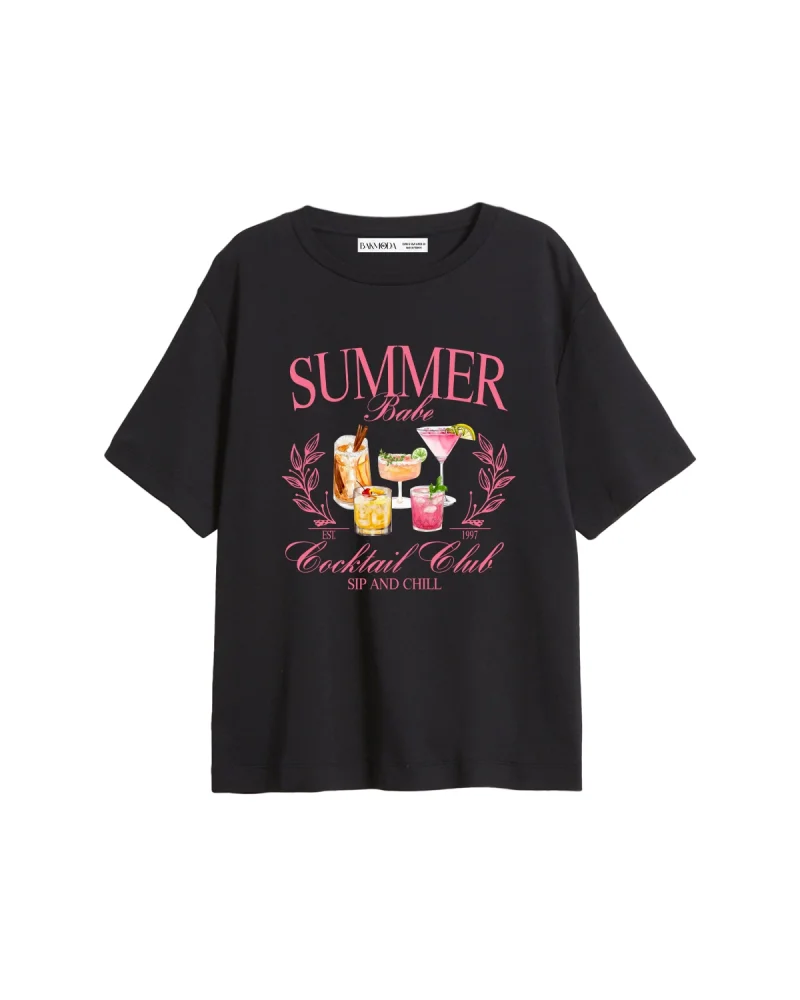 Summer Bbe Baskılı Relaxed Fit Siyah Kadın Tshirt