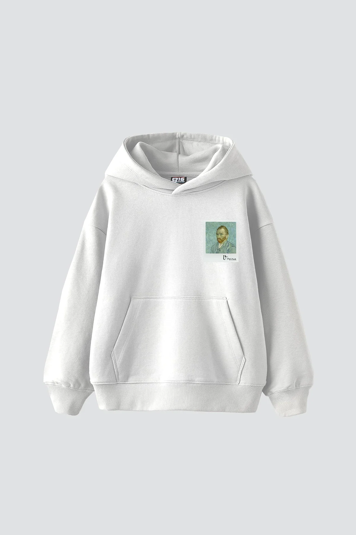 Van Gogh Polaroid Baskılı Oversize Kadın Beyaz Hoodie