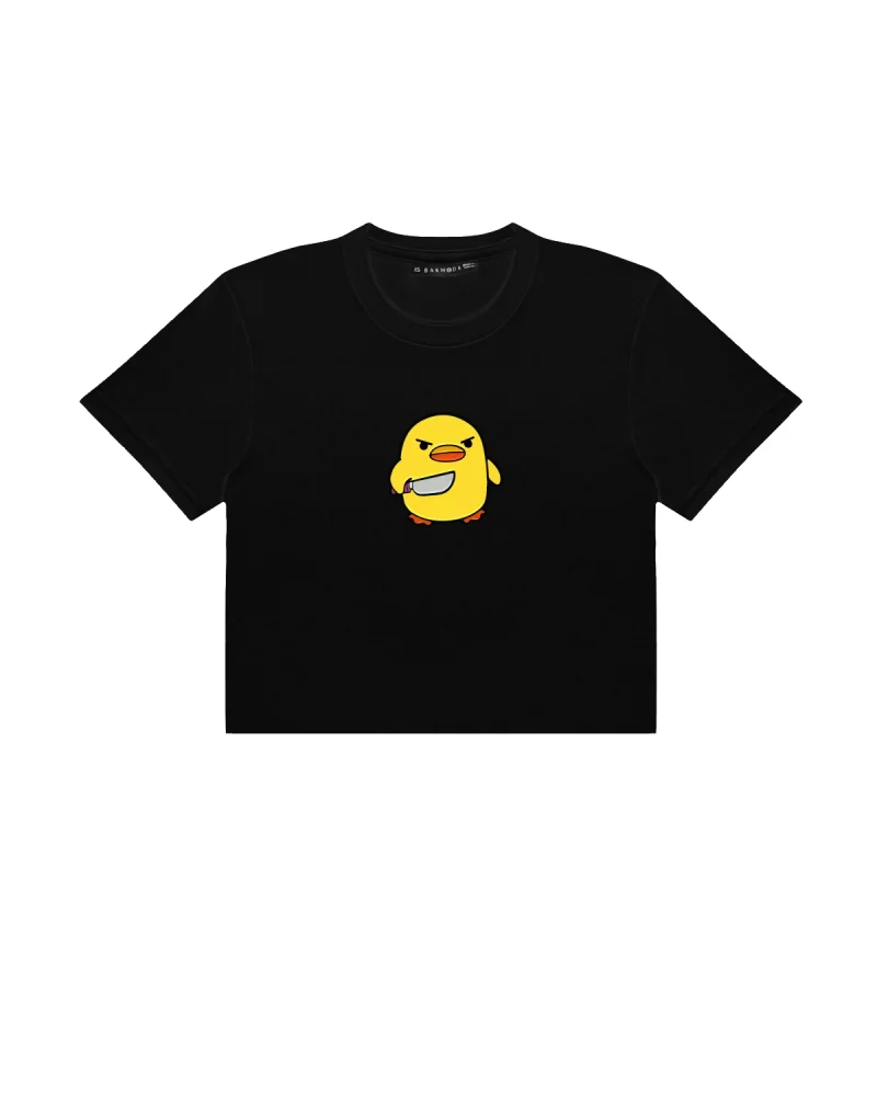 Fiyonk Baskılı Relaxed Fit Siyah Kadın Tshirt