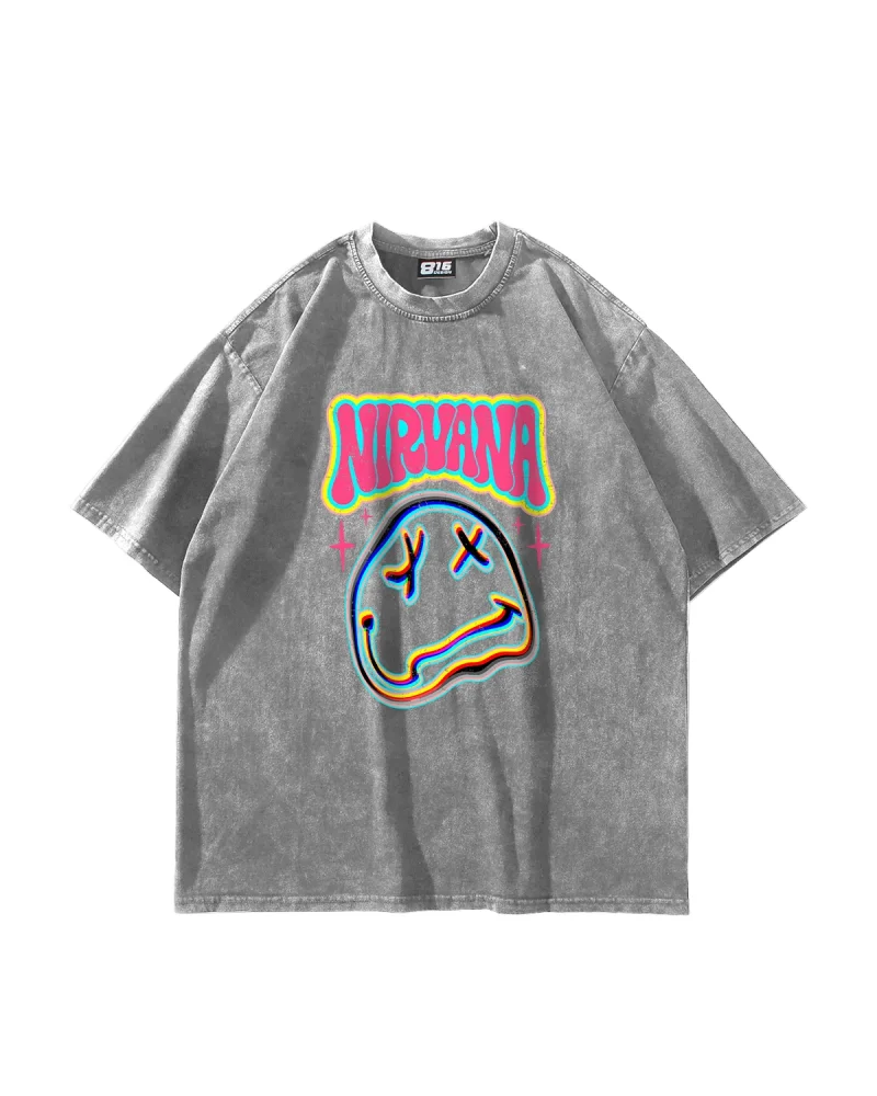 Nirvana Smile Baskılı Oversize Unisex Yıkamalı Beyaz Tshirt
