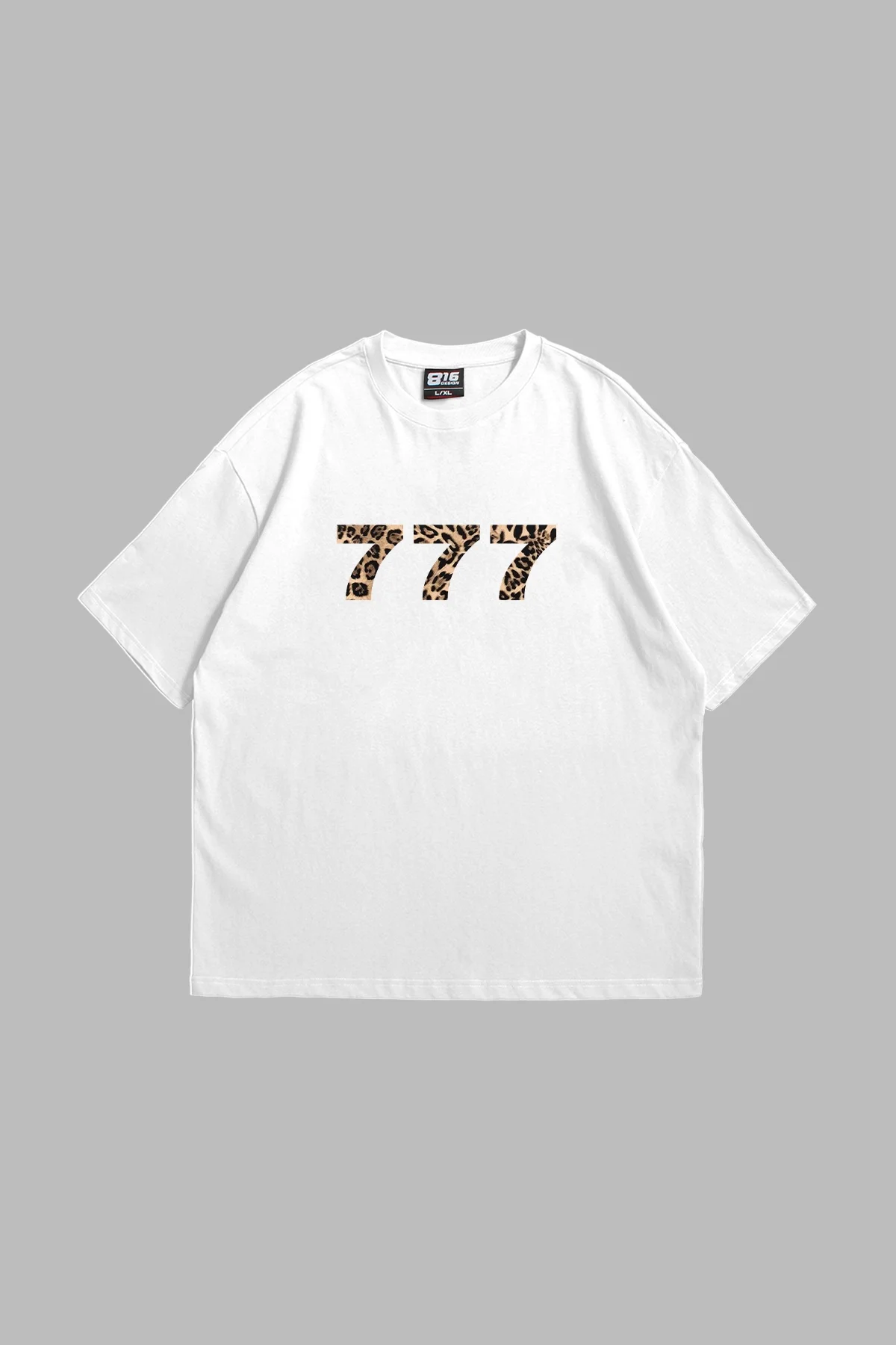 777 LEOPAR BASKILI OVERSİZE UNİSEX PREMİUM BEYAZ TSHİRT
