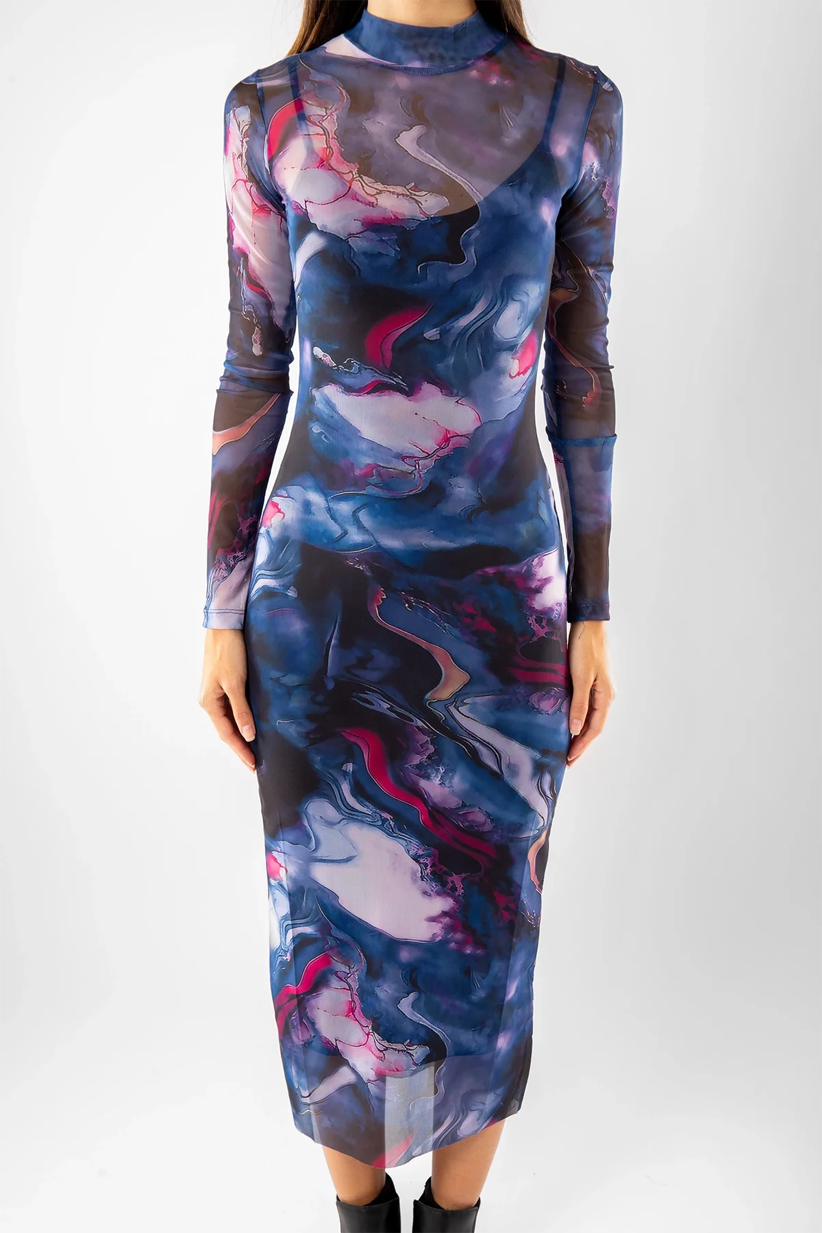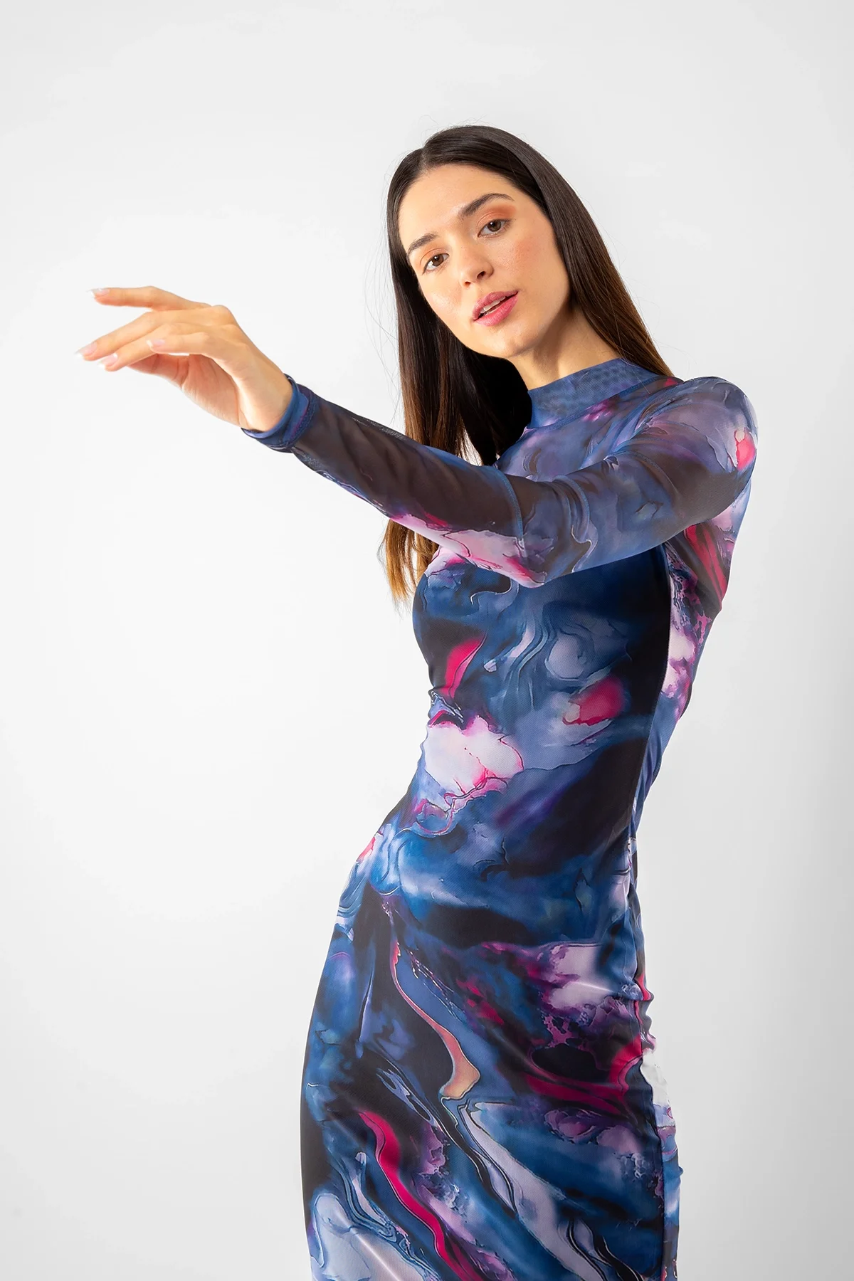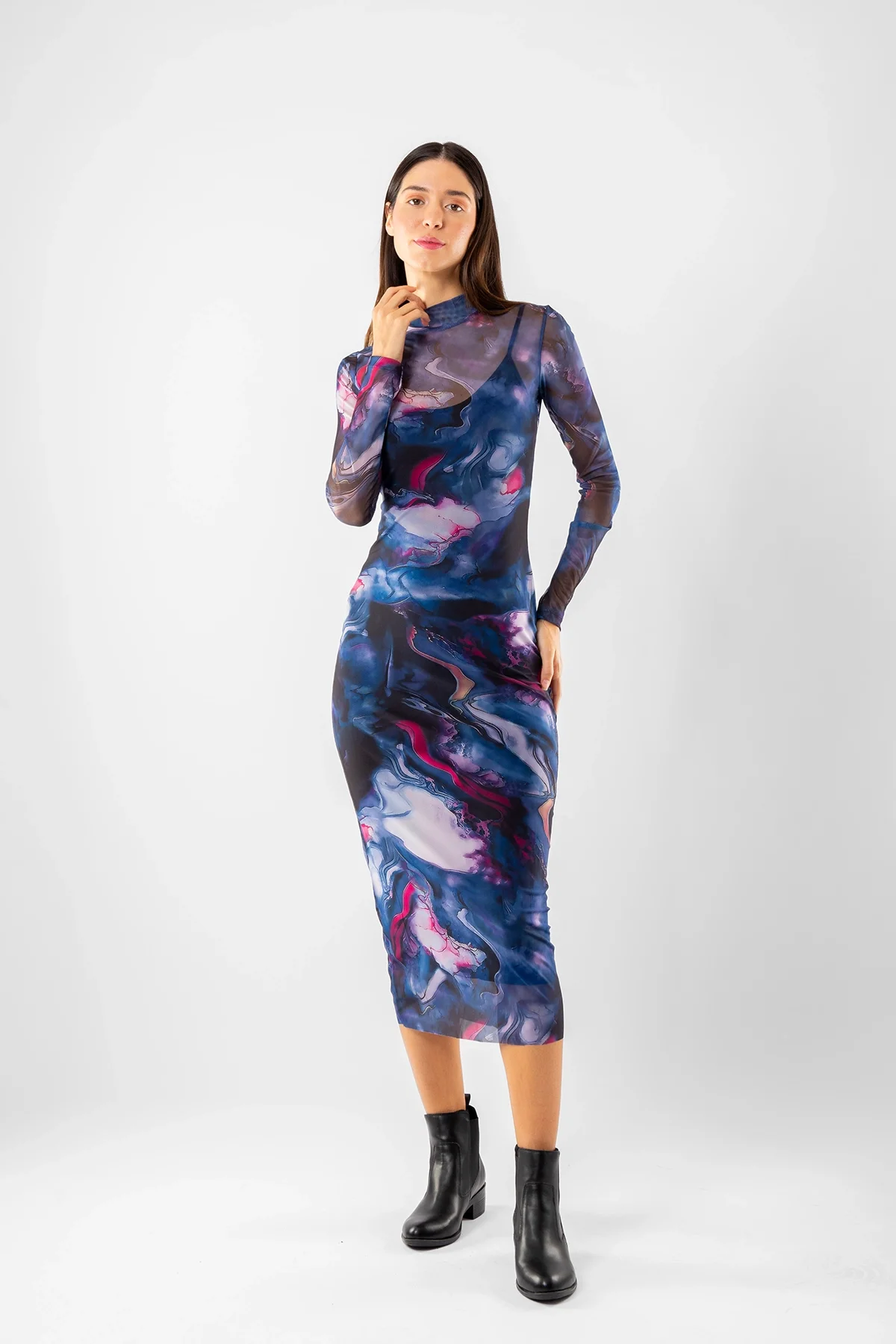 Zarif ve feminen tasarımıyla dikkat çeken, hafif tül kumaştan üretilmiş batik desenli uzun elbise. Özel davetler ve şık günler için ideal, romantik pembe tonlarıyla kusursuz bir seçim.