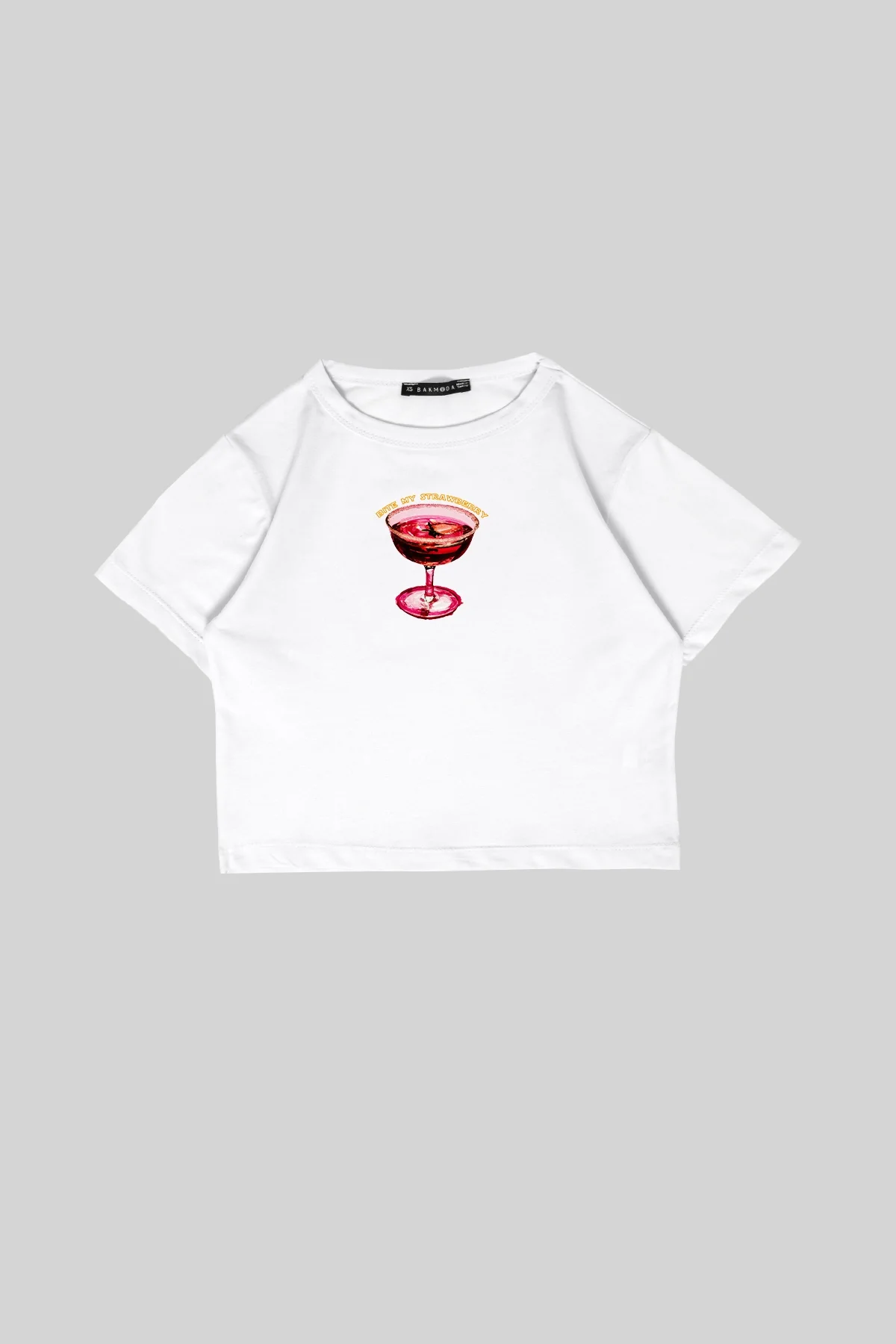 BİTE MY STRAWBERRY BASKILI BEYAZ CROP TOP
