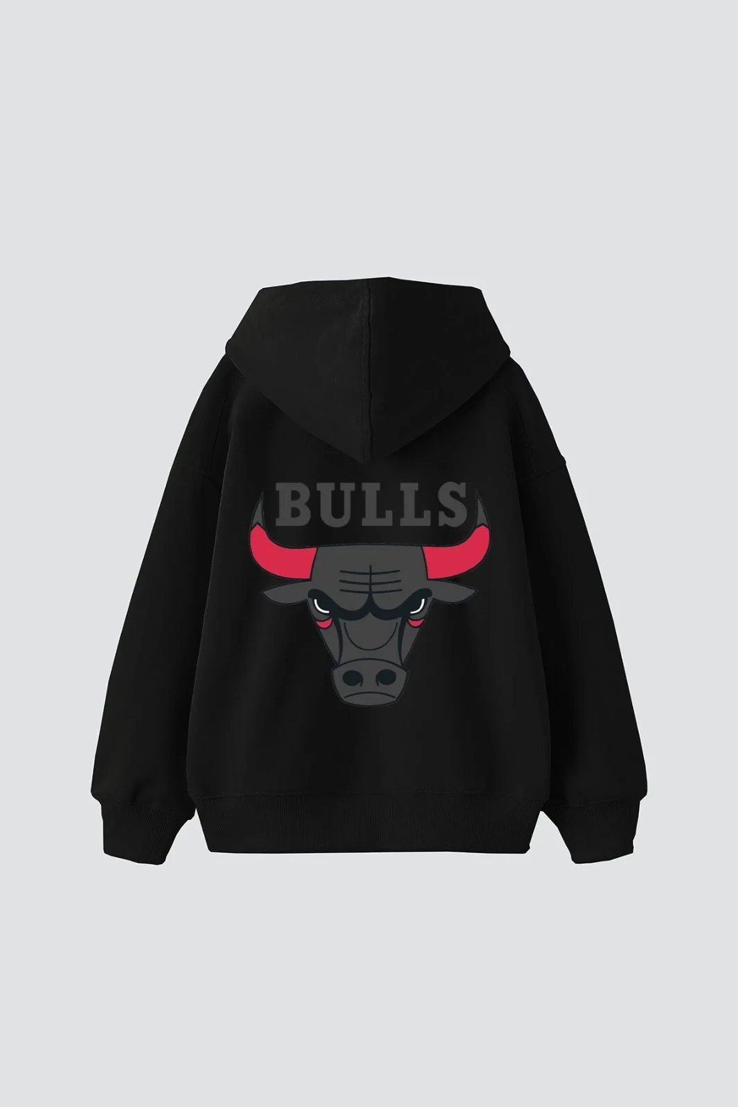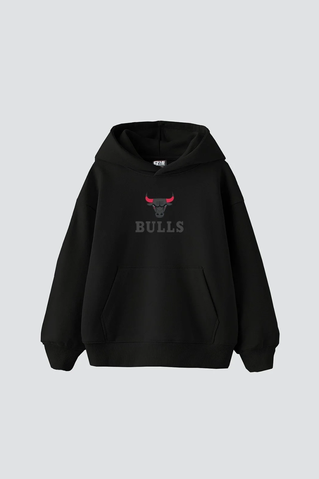 BULLS BASKILI OVERSİZE UNİSEX SİYAH HOODİE
