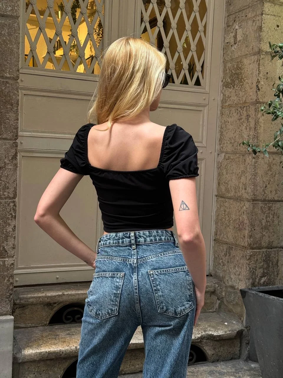 BÜZGÜLÜ SIRT DEKOLTELİ SİYAH CROP