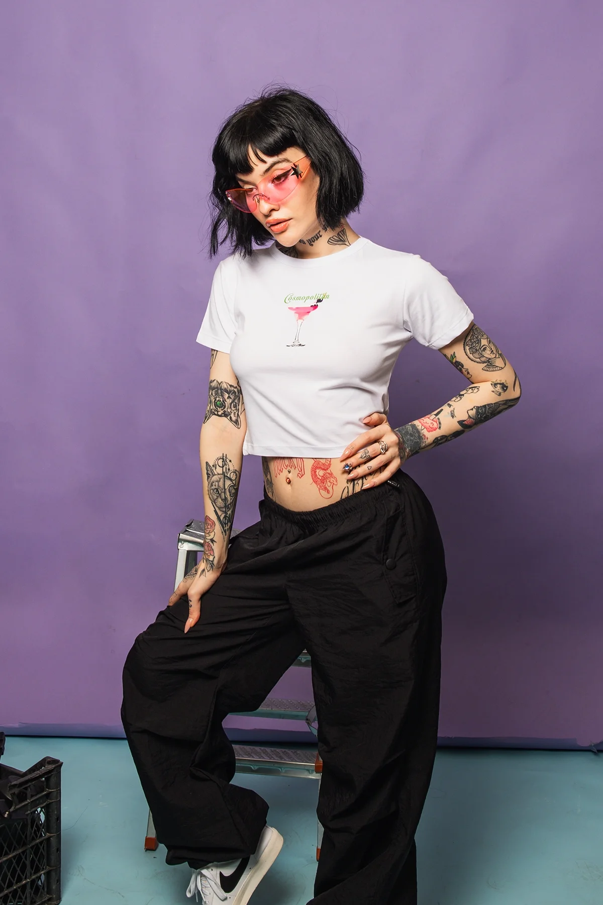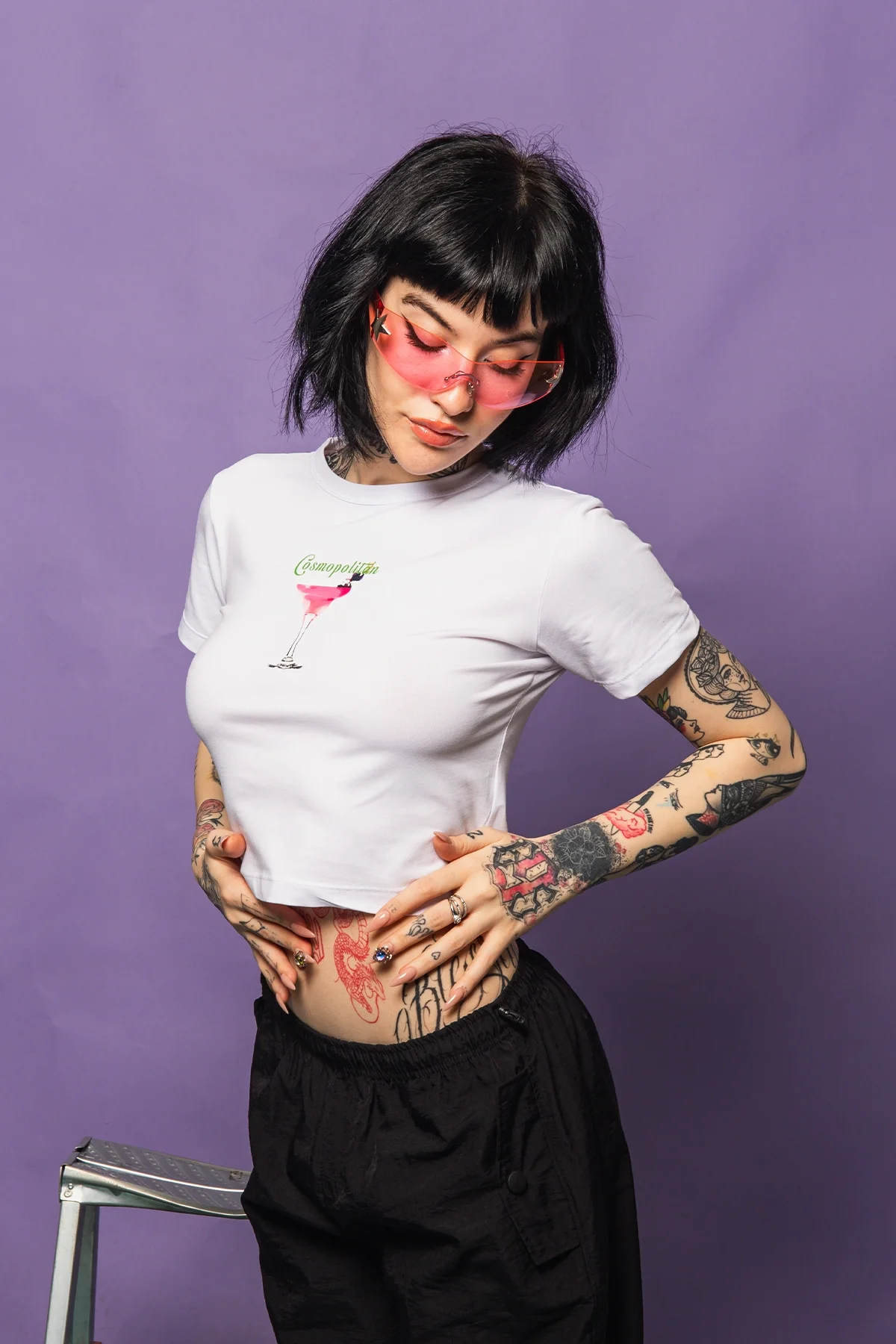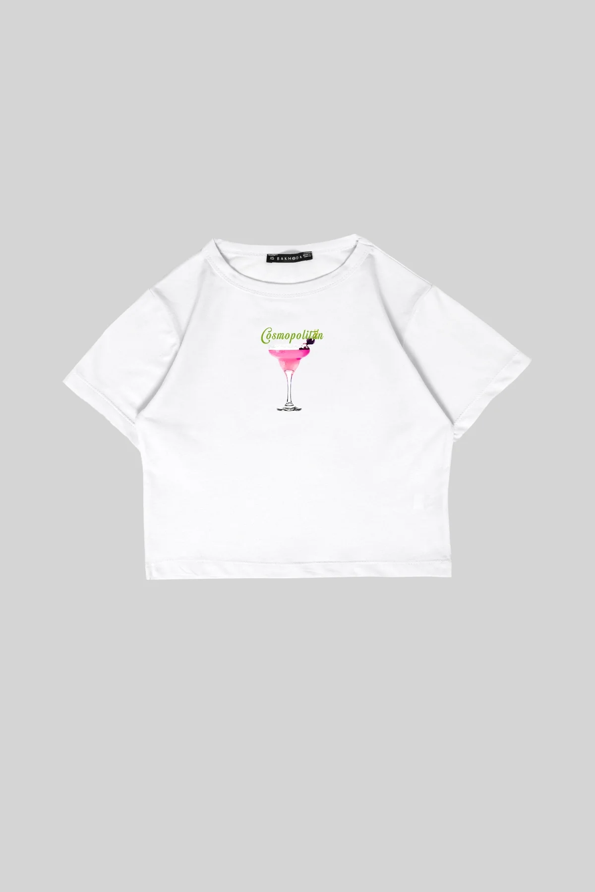 COSMOPOLİTAN BABY BASKILI BEYAZ CROP TOP