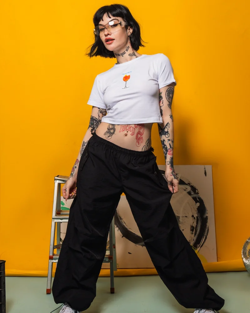 Aperol Spritz Baskılı Siyah Crop Top