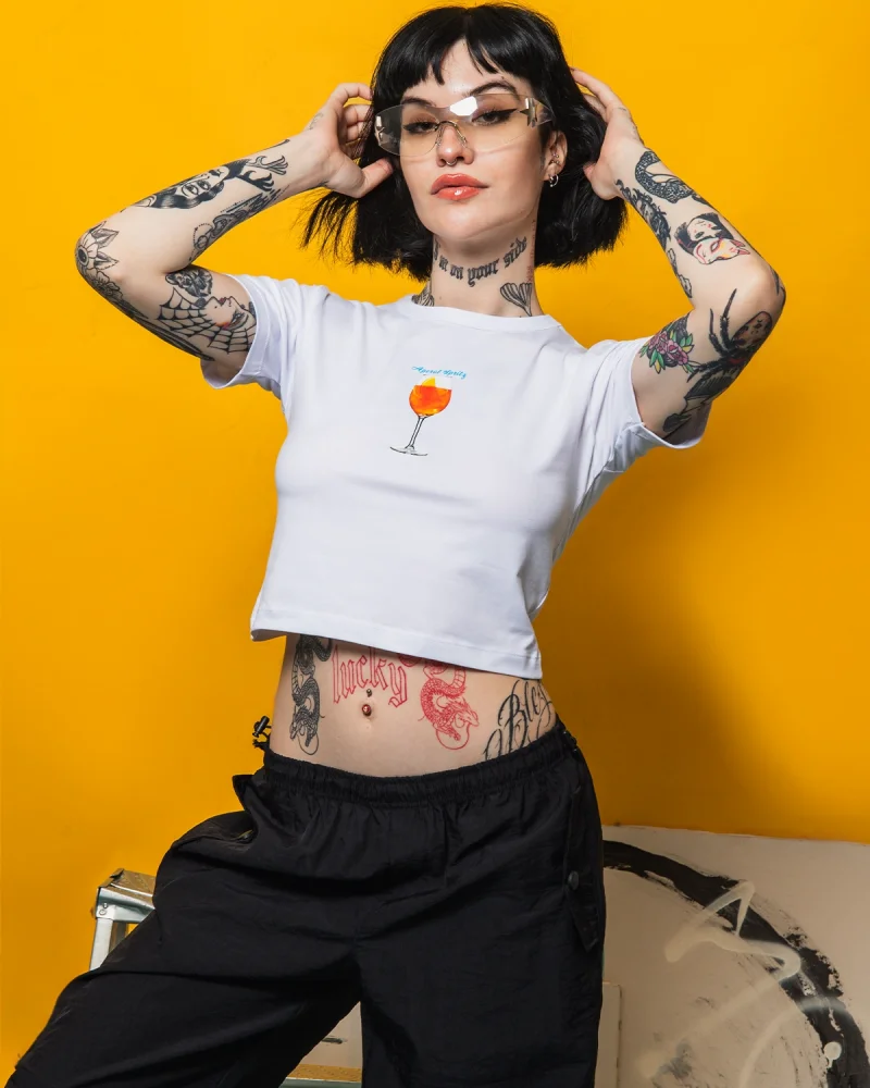Aperol Spritz Baskılı Beyaz Crop Top