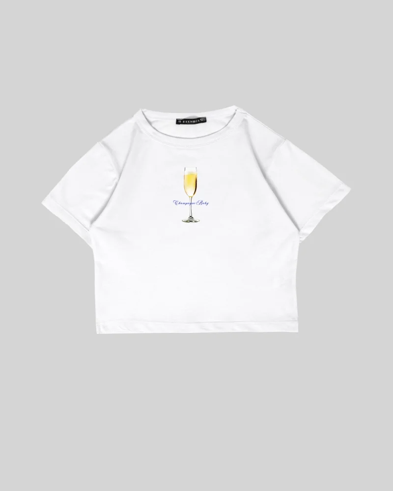 Champagne Baby Baskılı Beyaz Crop Top