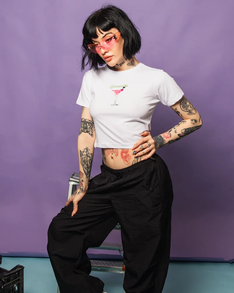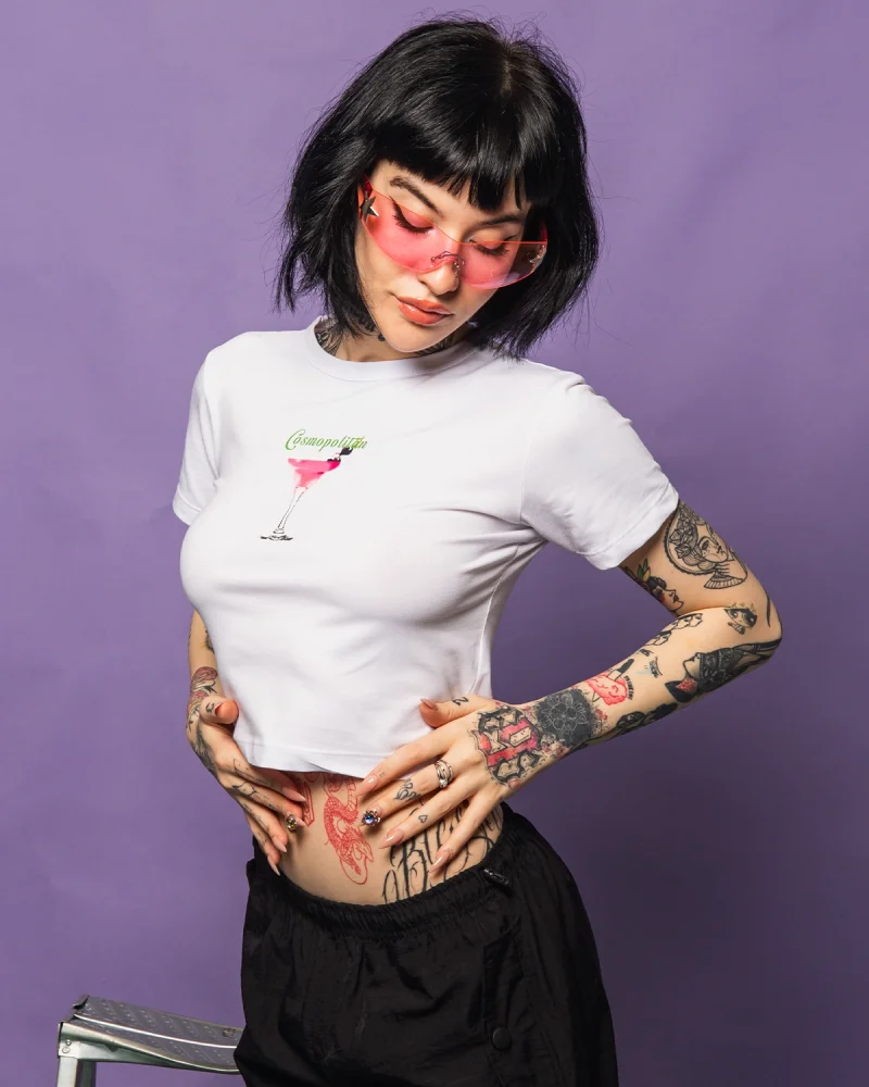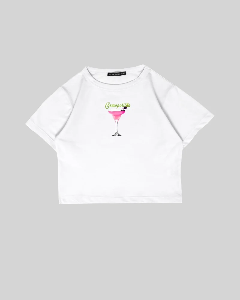 Cosmopolitan Baby Baskılı Beyaz Crop Top