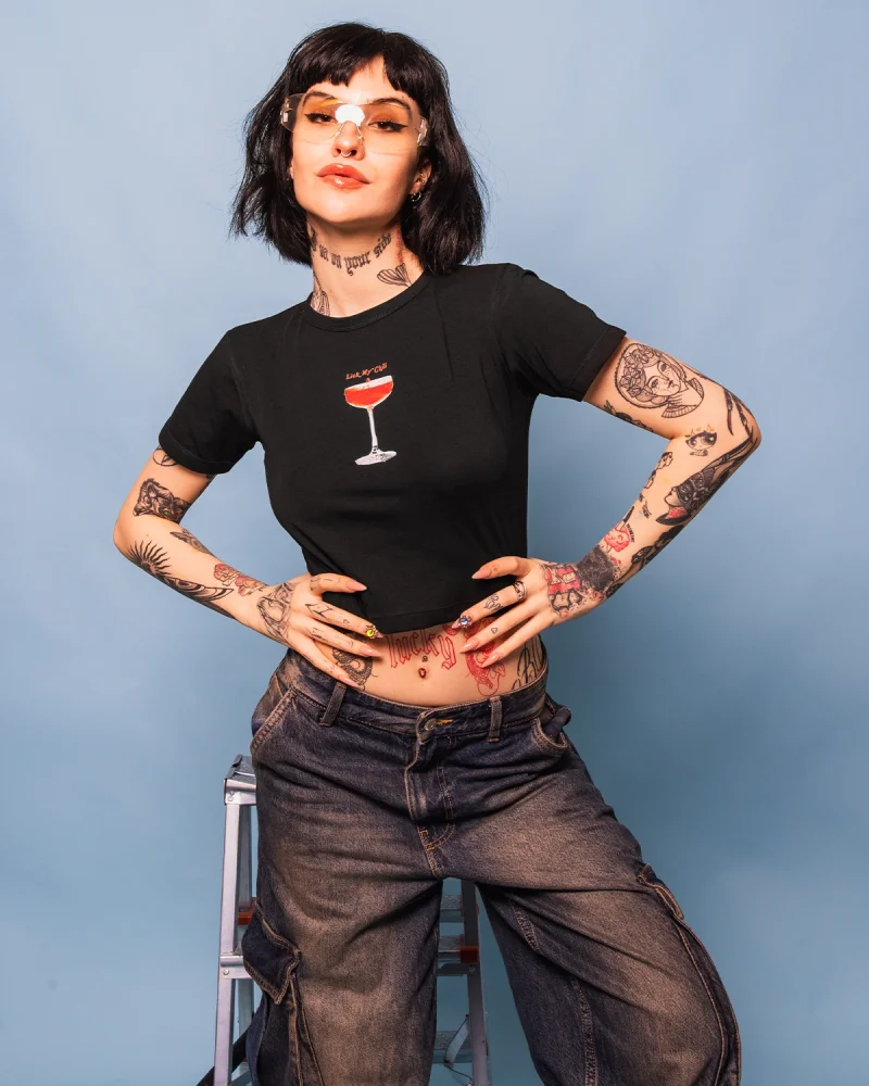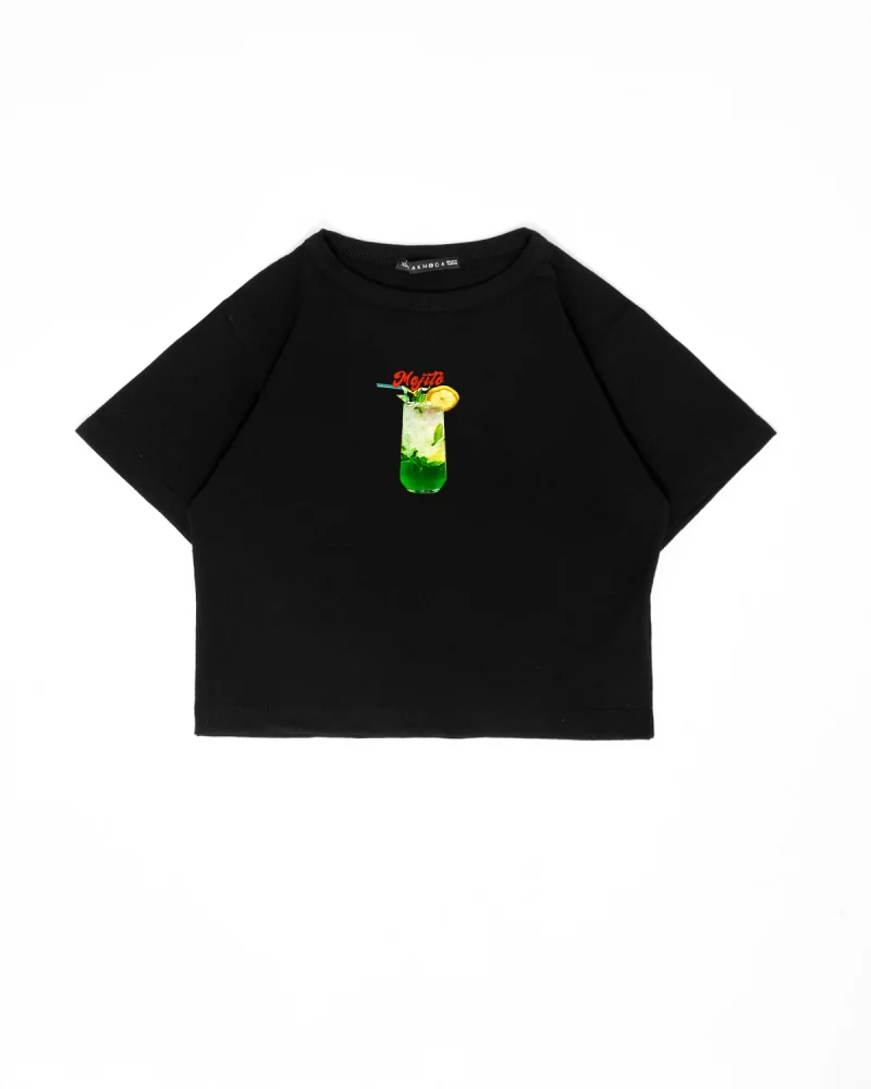 Mojito Baskılı Siyah Crop Top