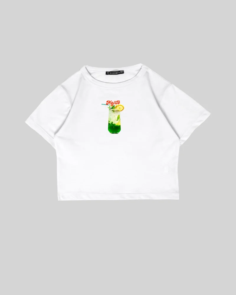 Mojito Baskılı Beyaz Crop Top