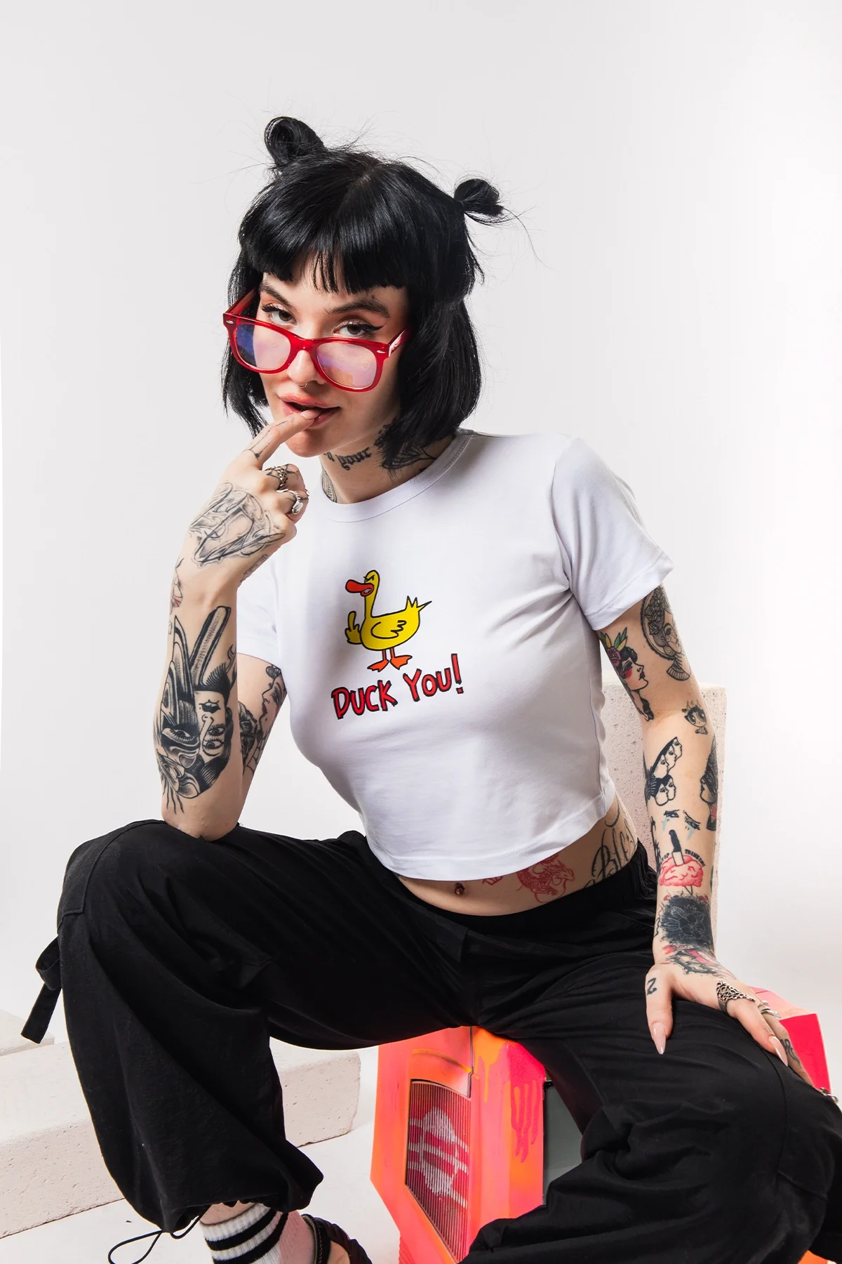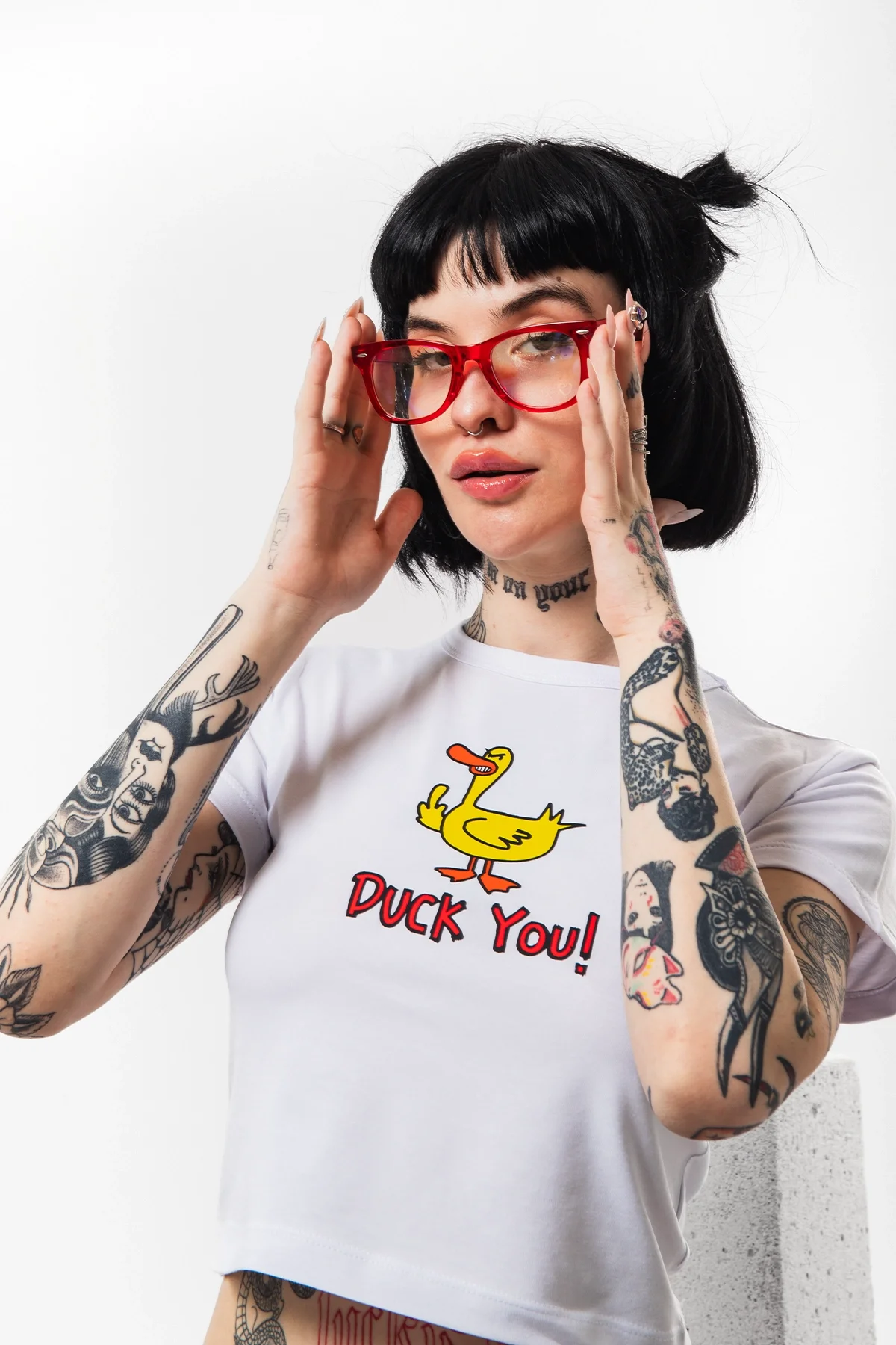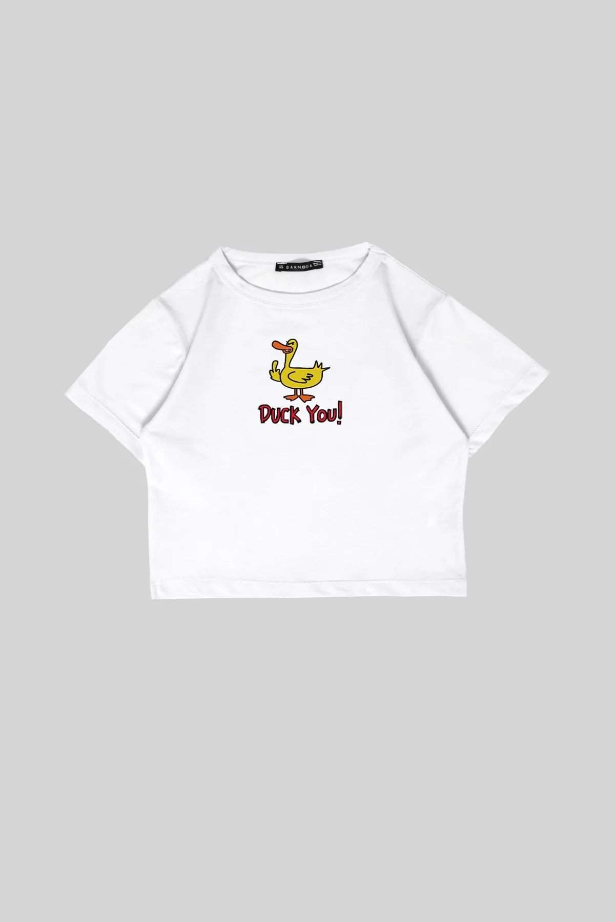 DUCK YOU BASKILI BEYAZ CROP TOP