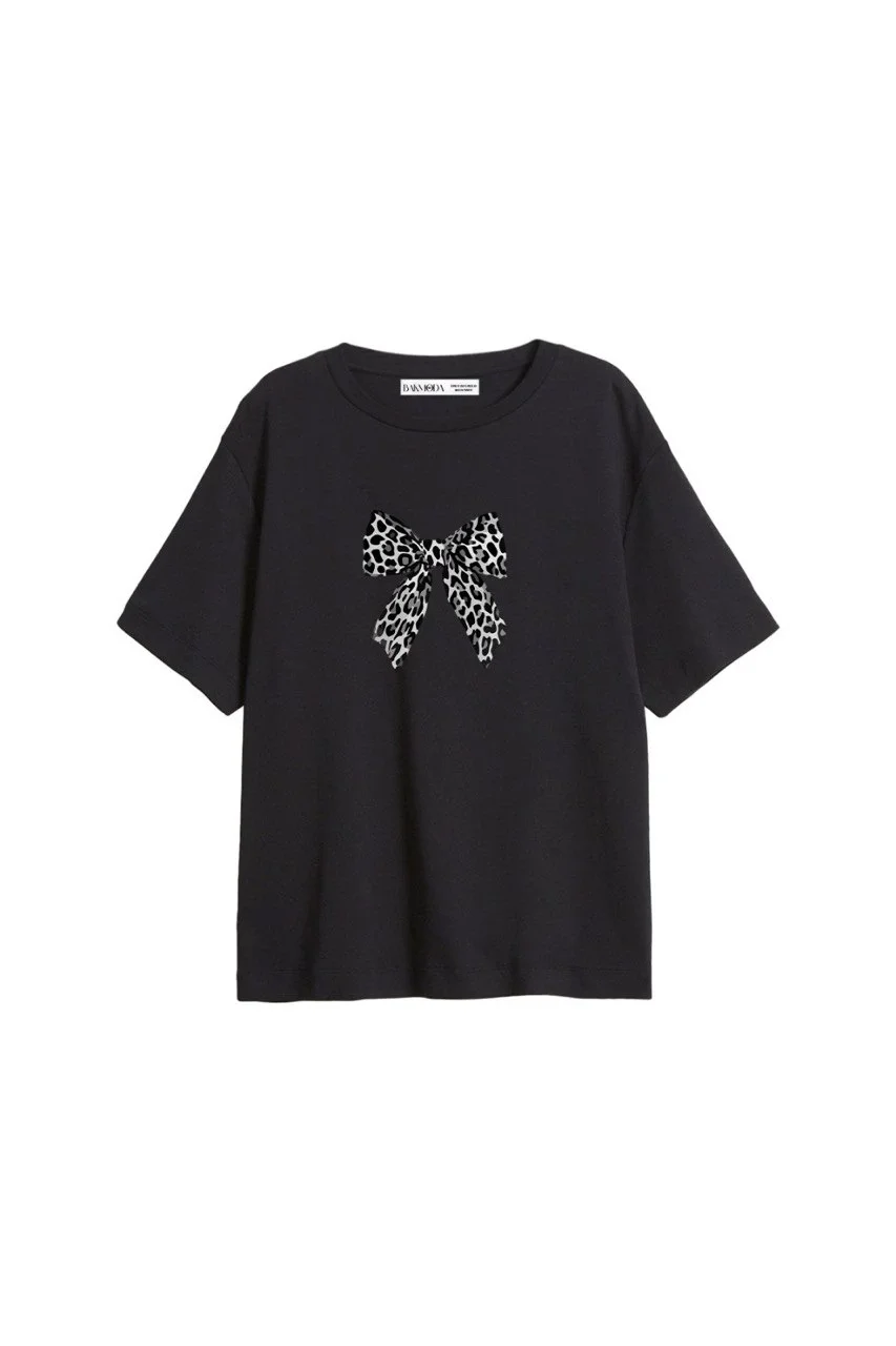 Maison Boheme Baskılı Relaxed Fit Siyah Kadın Tshirt