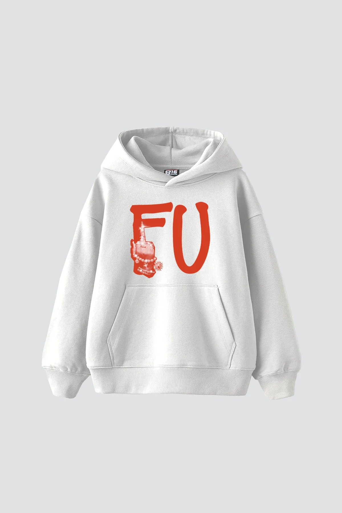 Stilini sade ama çarpıcı bir dokunuşla tamamla.FU. Baskılı Hoodie, oversize kesimi ve zamansız Beyaz rengiyle hem konforu hem tarzı bir araya getiriyor. Göğüs kısmındaki yazısı ve baskı detayıyla enerjik ve özgün bir görünüm sunar.
