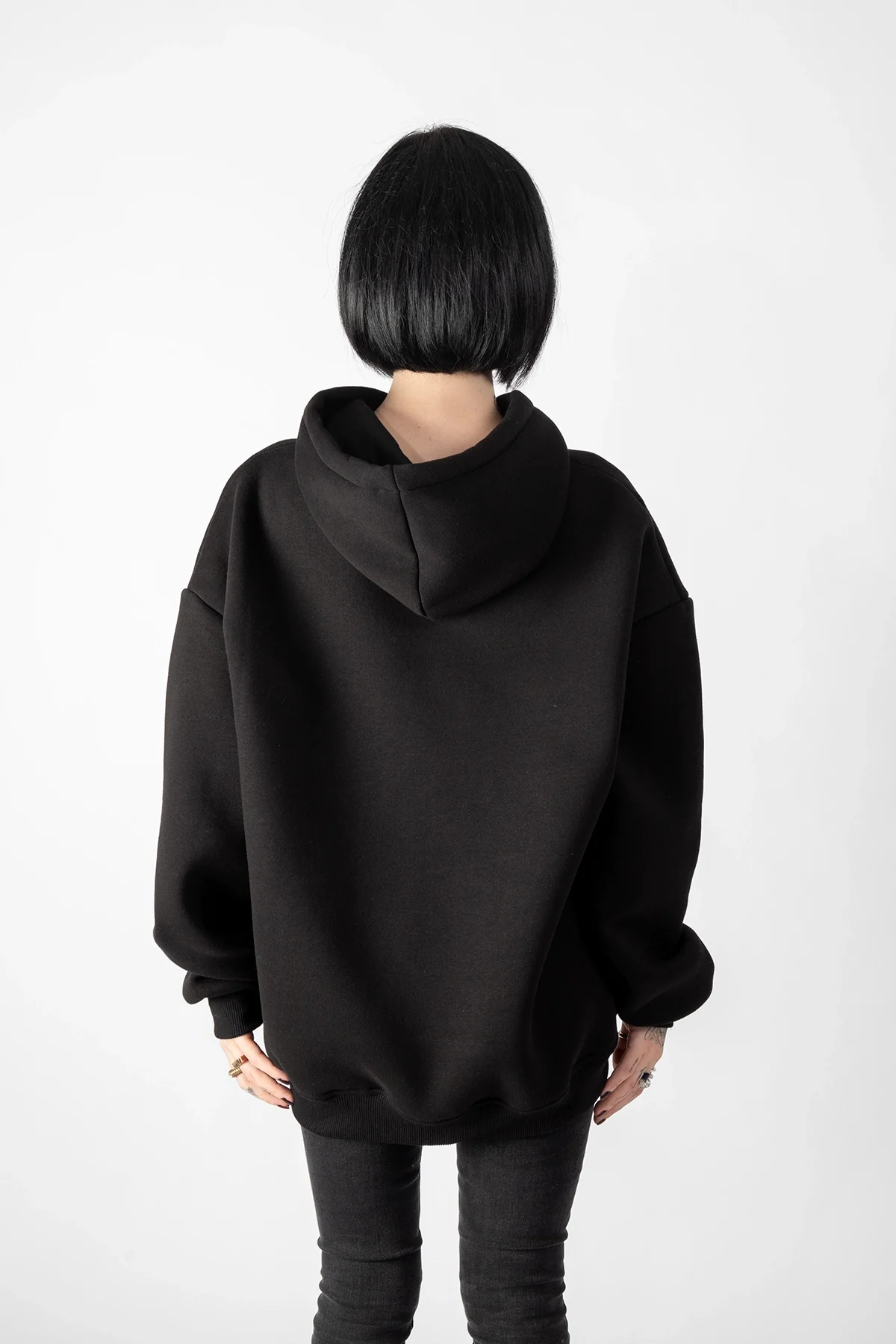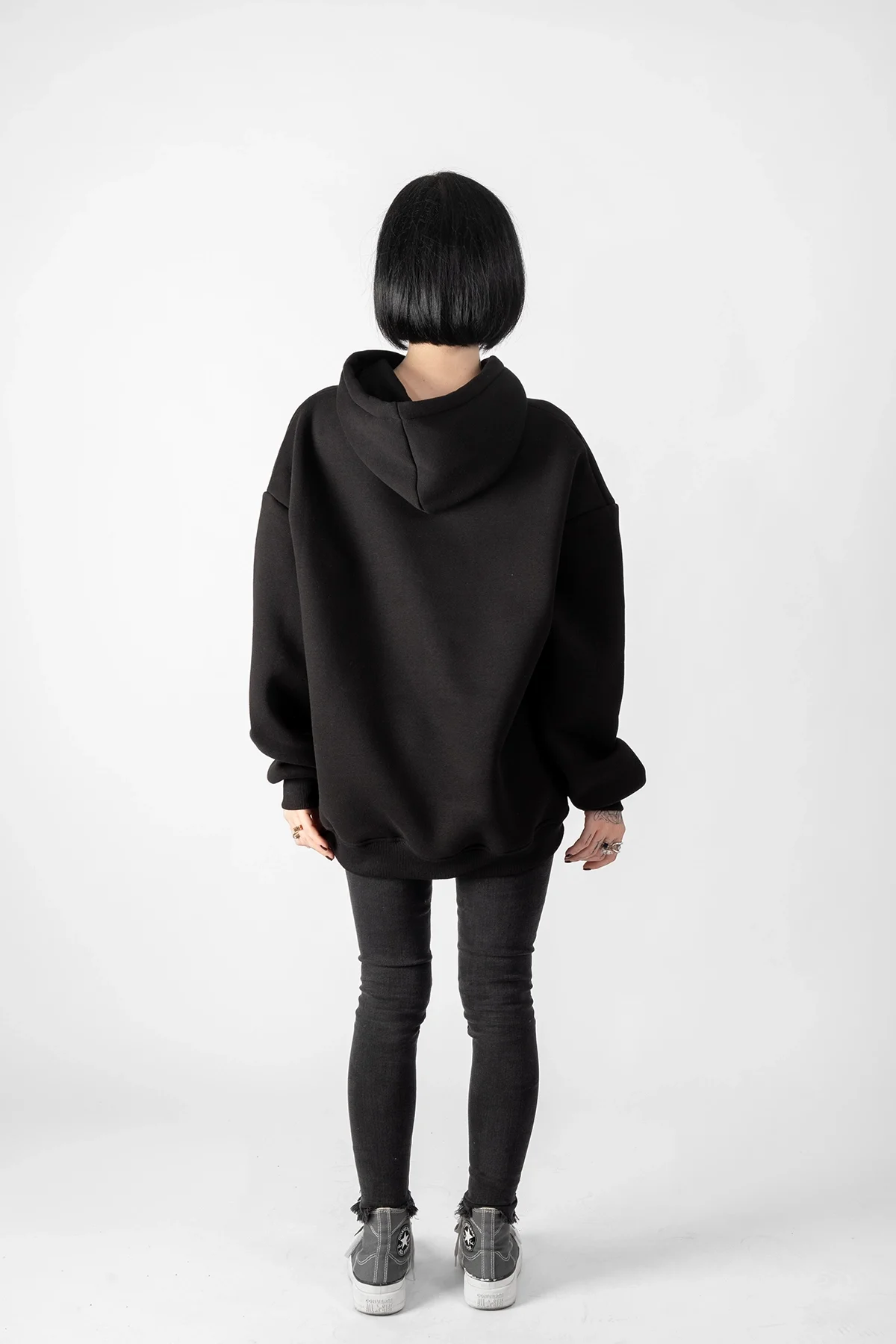 Bat Yarasa Baskılı Oversize Unisex Siyah Hoodie
