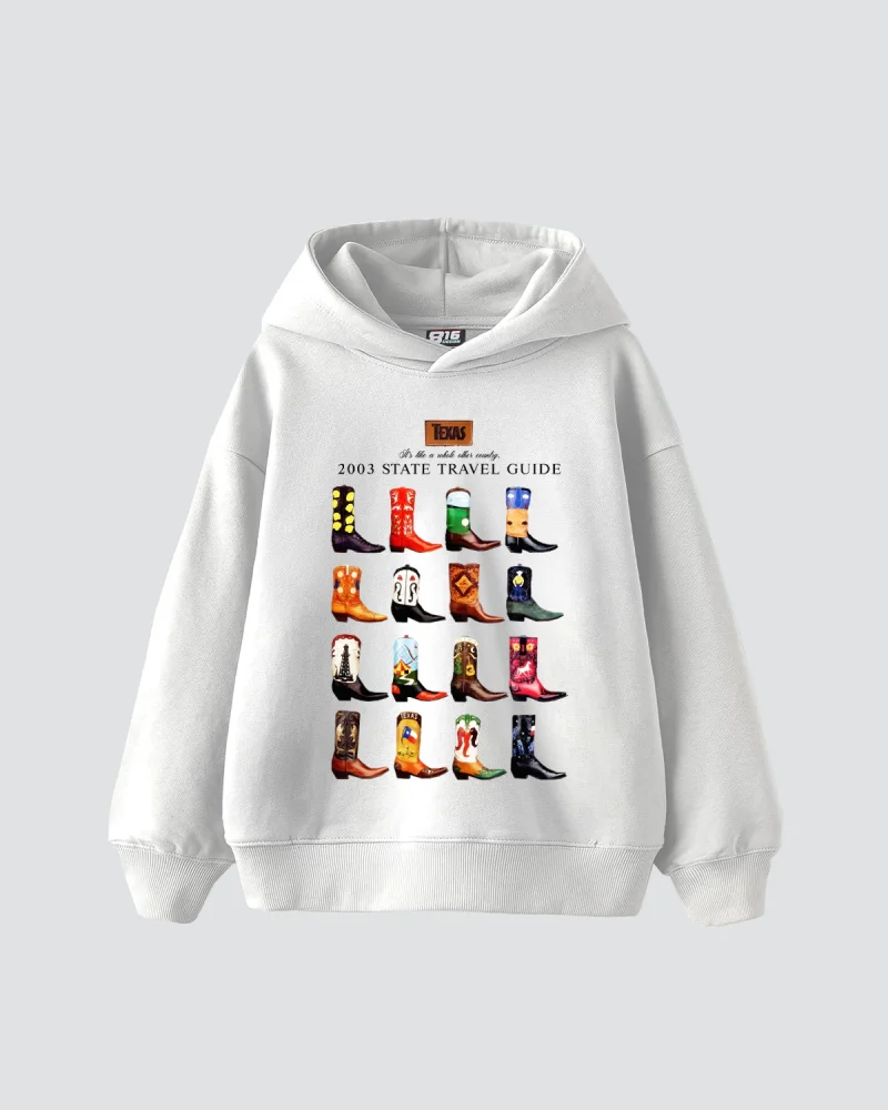 Cowboy Boots Cepsiz Baskılı Oversize Unisex Beyaz Hoodie