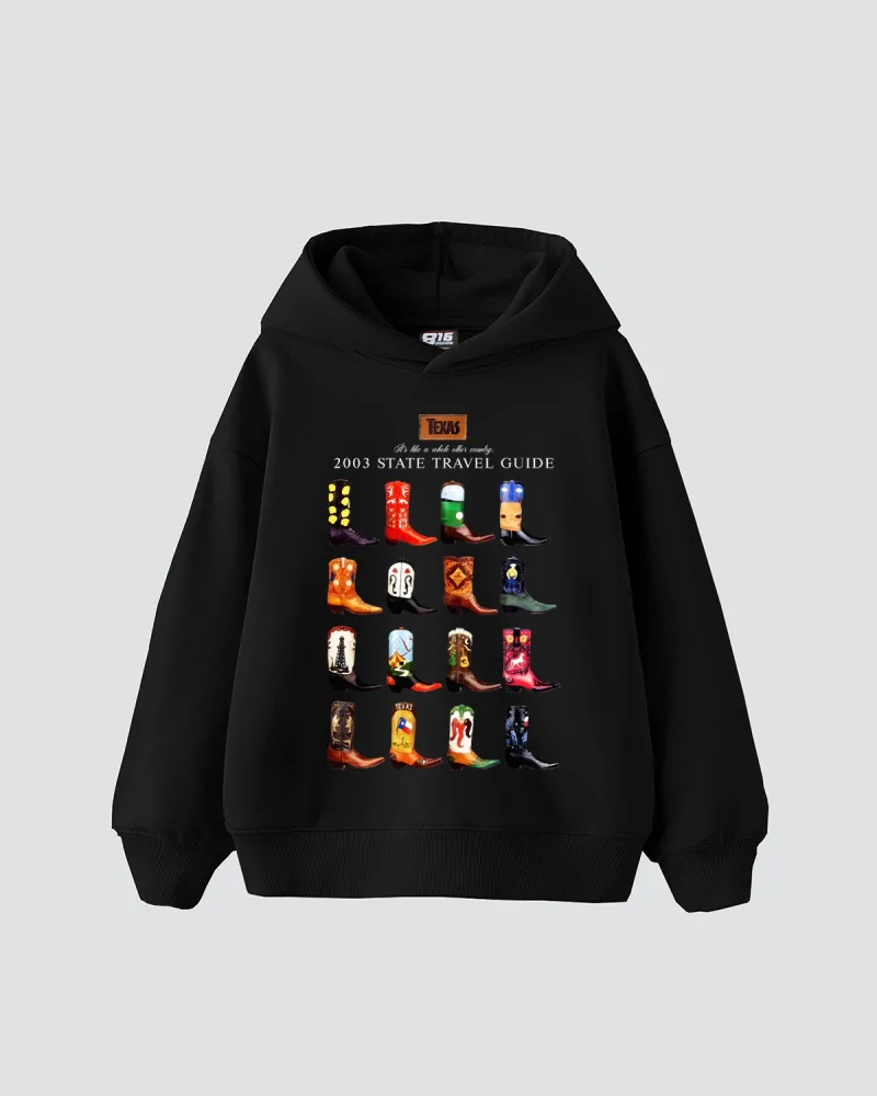 Cowboy Boots Cepsiz Baskılı Oversize Unisex Siyah Hoodie